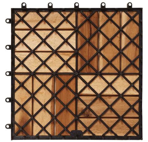 Dalele sunt realizate din lemn de salcâm de înaltă calitate, un lemn tropical de esență tare, care, bineînțeles, este rezistent la intemperii și foarte durabil. Mulțumită elementelor de legătură, dalele pot fi îmbinate și fixate cu ușurință pentru a forma o suprafață de mers stabilă.