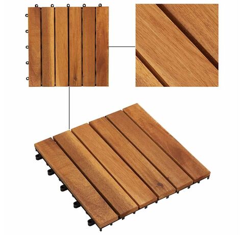 Cantitatea minima pentru "Set dale din lemn de salcâm cu model vertical 30 x 30 cm, 30 buc." este 1.