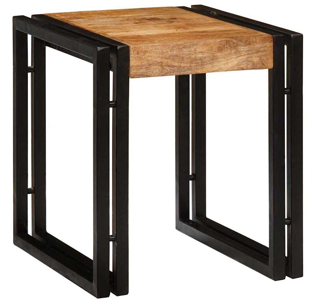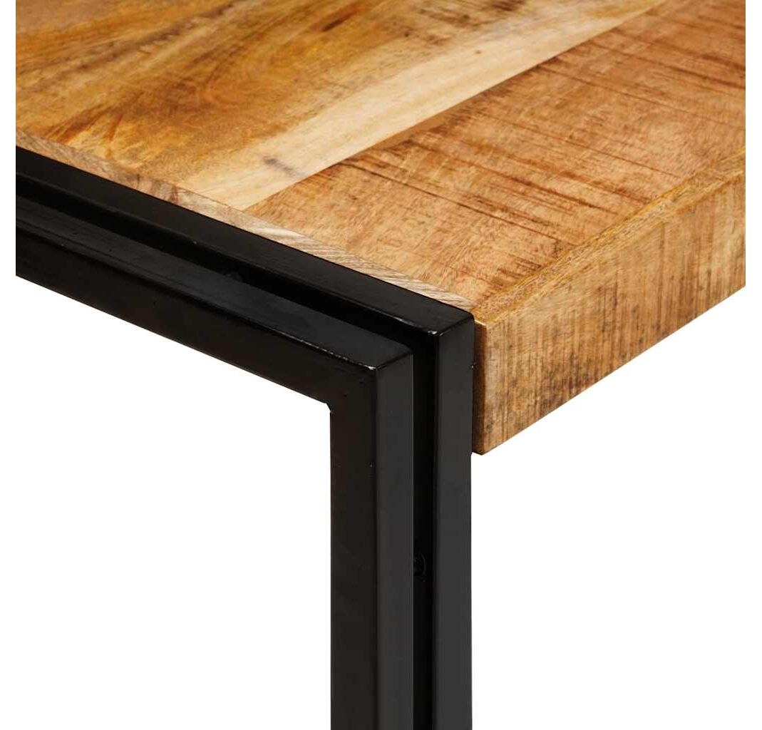 - Construcție solidă: Realizate din lemn masiv de mango și un cadru din metal mat, aceste mese sunt foarte rezistente și își păstrează farmecul în timp.