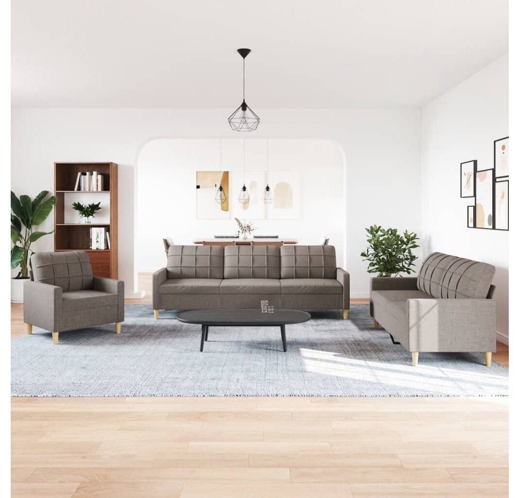 Cantitatea minima pentru "Set de canapele, 3 piese, gri taupe, textil" este 1.