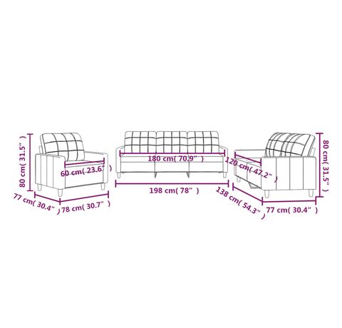 - Dimensiuni totale: 198 x 77 x 80 cm (l x ad. x î)