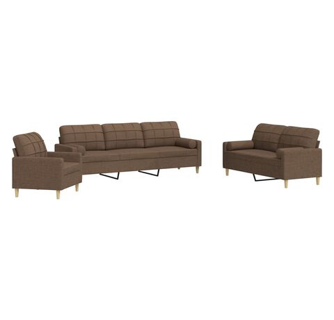 Set de canapele cu perne decorative, 3 piese, maro, textil