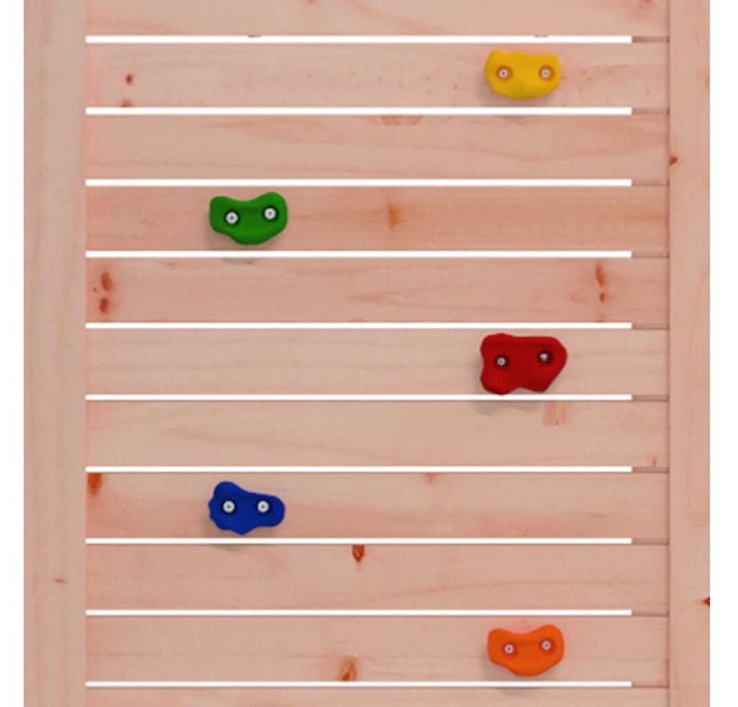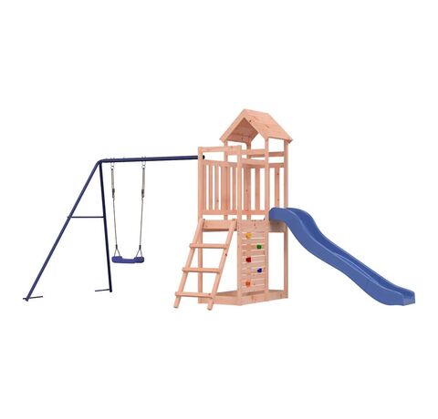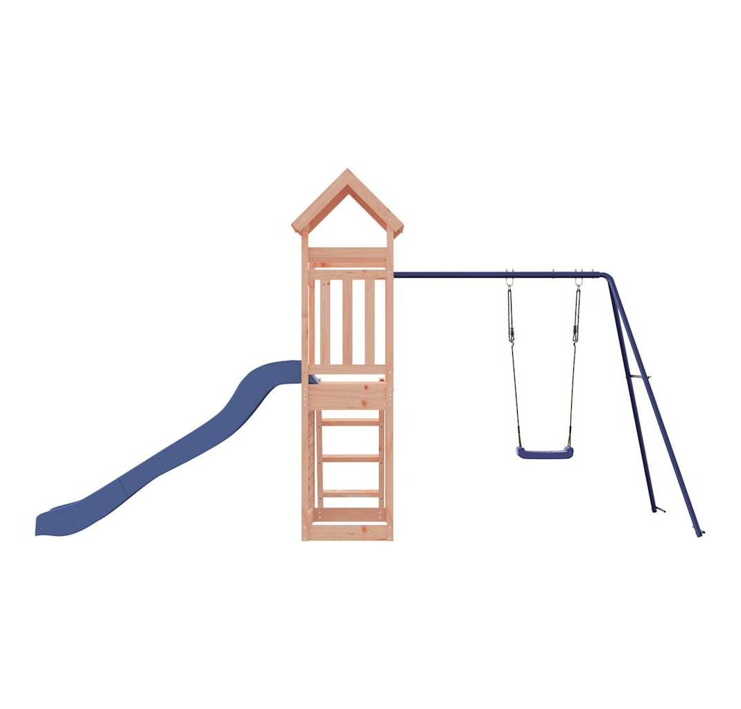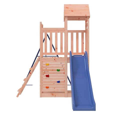 - Material rezistent: Acest cadru de cățărare cu tobogan este realizat din lemn masiv de douglas. Lemnul masiv de douglas este un lemn foarte durabil, care funcționează bine pentru exterior. Lemnul douglas este, de asemenea, suficient de rezistent pentru a avea nevoie de îngrijire minimă, chiar și sub influența intemperiilor.