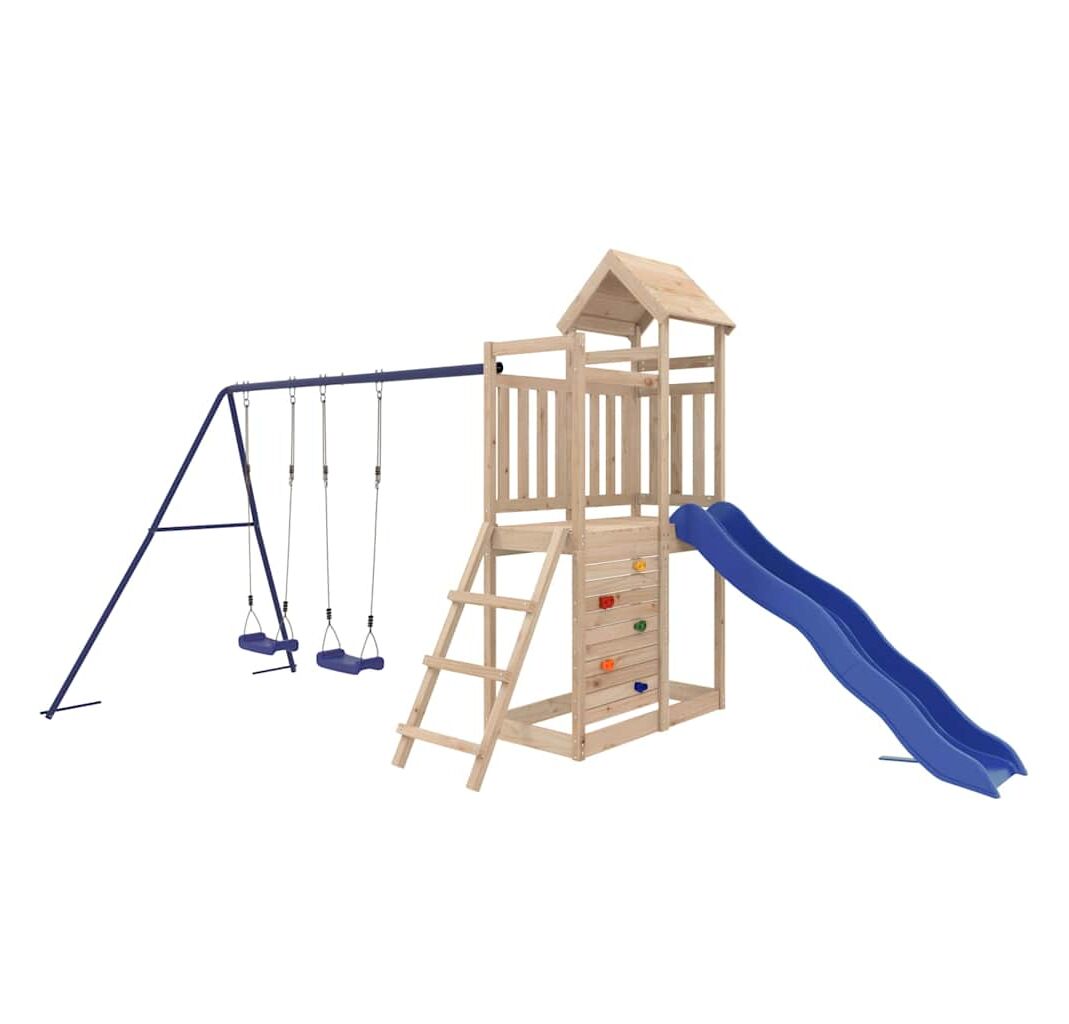 - Cadru robust și stabil: Cadrul din lemn al căsuței de cățărare pentru grădină asigură rezistență și stabilitate. În plus, picioarele în formă de „A” ale leagănului pentru copii oferă echilibru.