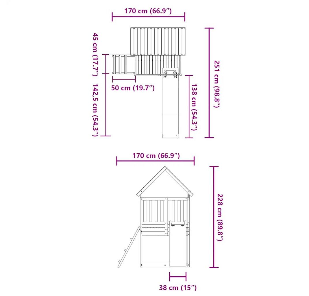 - Design atent: balustradele din lemn din jur sunt proiectate pentru a asigura siguranța copiilor în timpul jocului lor fericit. De asemenea, acoperișul din lemn oferă umbră copiilor dvs. în zilele toride de vară.