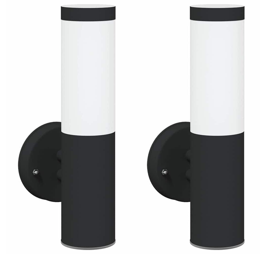Set de lumini de perete 2 buc negre din oțel inoxidabil IP44