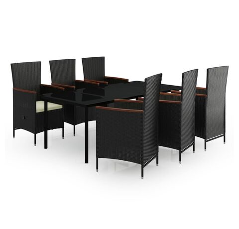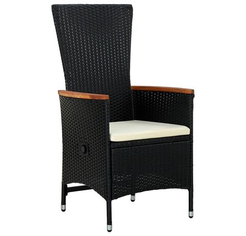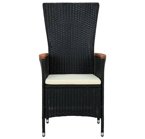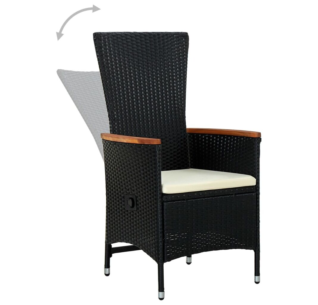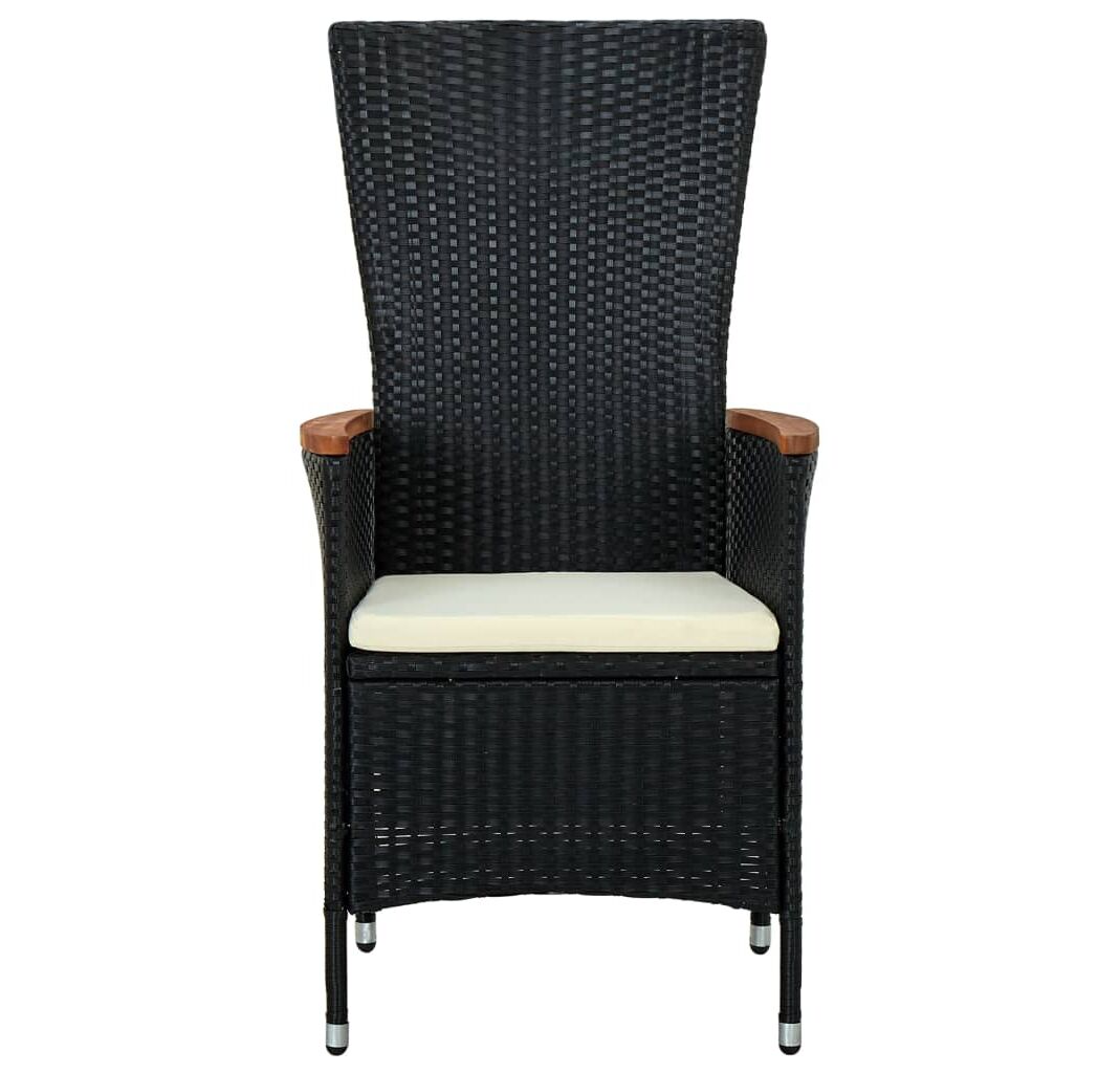 Cadrele din oțel vopsit electrostatic, fac ca masa și scaunele să fie robuste și stabile, pentru utilizarea zilnică în aer liber. Datorită ratanului PE rezistent la apă, scaunele sunt ușor de curățat și rezistente la uzură. Spătarul se înclină trăgând de butonul din lateral. Datorită construcției ușoare, sunt ușor de mutat. Pernele pentru scaune gros căptușite adaugă, de asemenea, un plus de confort. Husele de perne din poliester, cu întreținere redusă, pot fi îndepărtate și spălate cu ușurință. În plus, blatul mesei din sticlă netedă este ușor de curățat cu o cârpă umedă și perfect pentru așezarea mâncărurilor, băuturilor sau a obiectelor decorative.