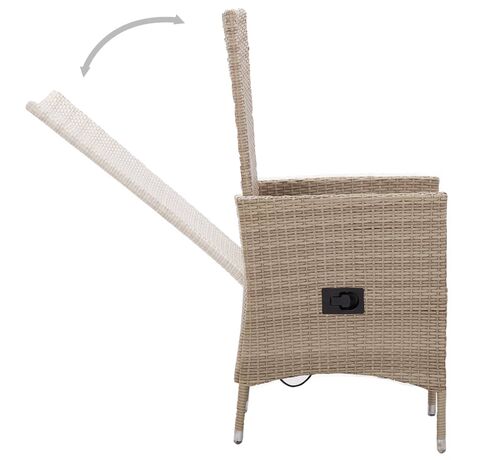 Cadrele din oțel vopsit electrostatic, fac ca masa și scaunele să fie robuste și stabile, pentru utilizarea zilnică în aer liber. Datorită ratanului PE rezistent la apă, scaunele sunt ușor de curățat și rezistente la uzură. Spătarul se înclină trăgând de butonul din lateral. Datorită construcției ușoare, sunt ușor de mutat. Pernele pentru scaune gros căptușite adaugă, de asemenea, un plus de confort. Husele de perne din poliester, cu întreținere redusă, pot fi îndepărtate și spălate cu ușurință. În plus, blatul mesei din sticlă netedă este ușor de curățat cu o cârpă umedă și perfect pentru așezarea mâncărurilor, băuturilor sau a obiectelor decorative.
