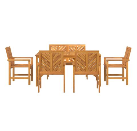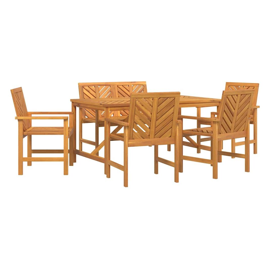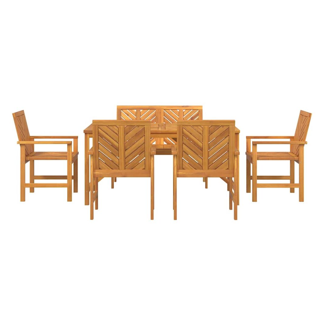 Acest set de mese pentru grădină e combinația perfectă dintre utilitate și estetică, fiind ideal pentru spațiul tău exterior. E făcut din lemn masiv de acacia și include o masă dreptunghiulară, o bancă mare și patru scaune moderne ca să te bucuri de mese sau să te relaxezi.