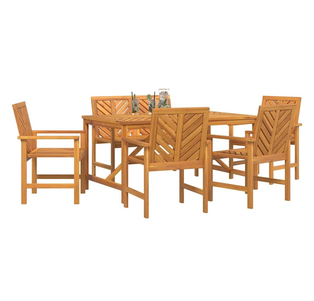 - Material Durabil: Făcut din lemn masiv de acacia, setul ăsta e construit să reziste și să facă față vremii.