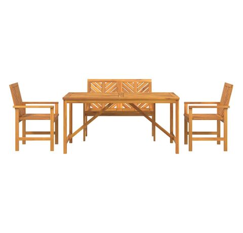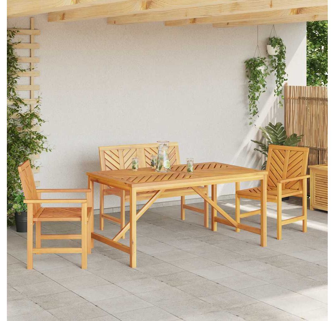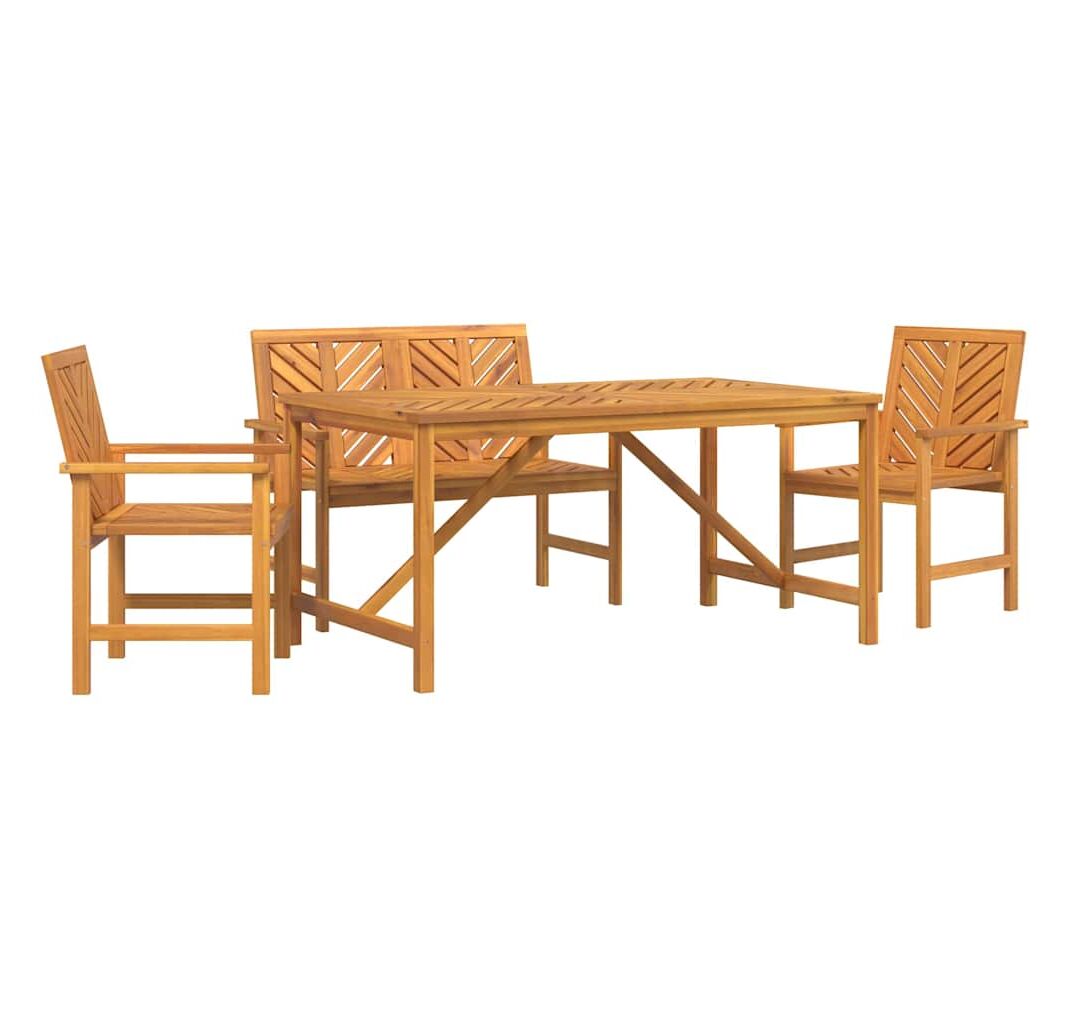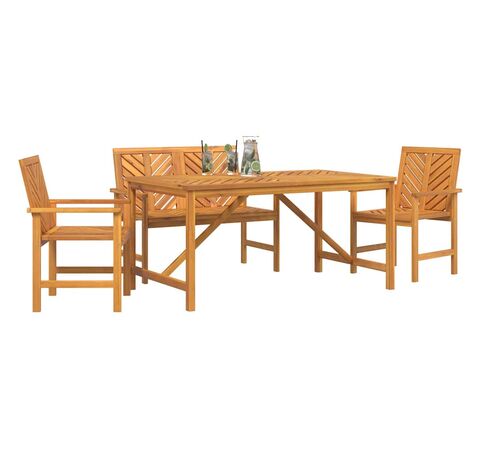 Acest fain set de mese pentru grădină combină stilul cu funcționalitatea, ideal pentru spațiul tău afară. Facut din lemn de acacia, vine cu o masă rectangulară încăpătoare, o bancă confortabilă și două scaune frumos realizate, oferindu-ți un loc robust și elegant pentru mese sau relaxare.