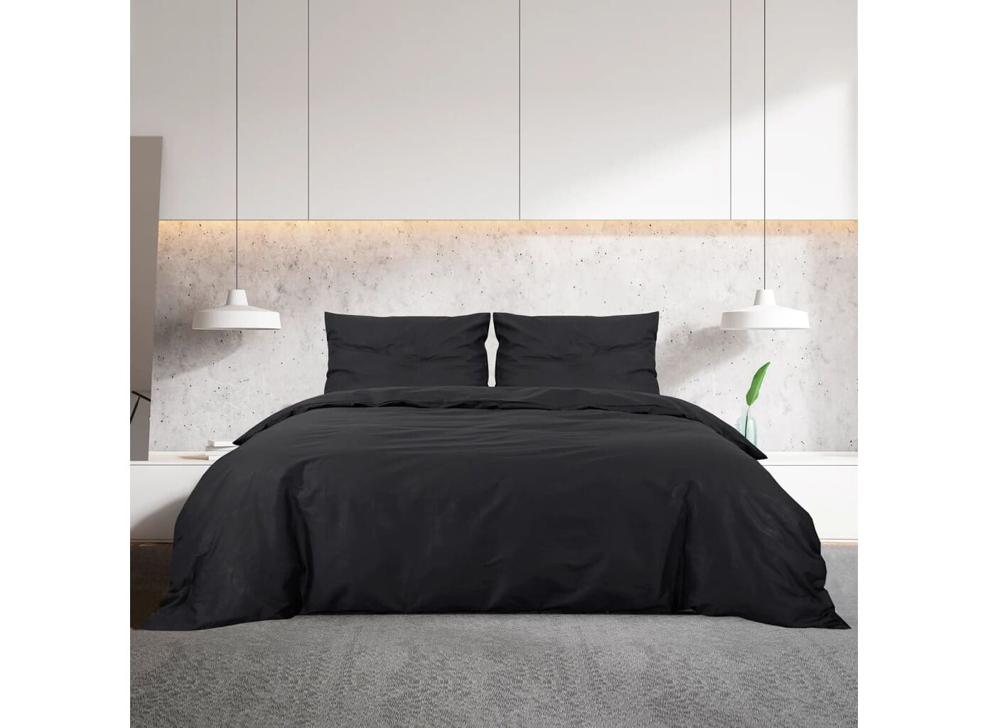 Set cu husă de pilotă, negru, 140x200 cm, bumbac