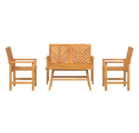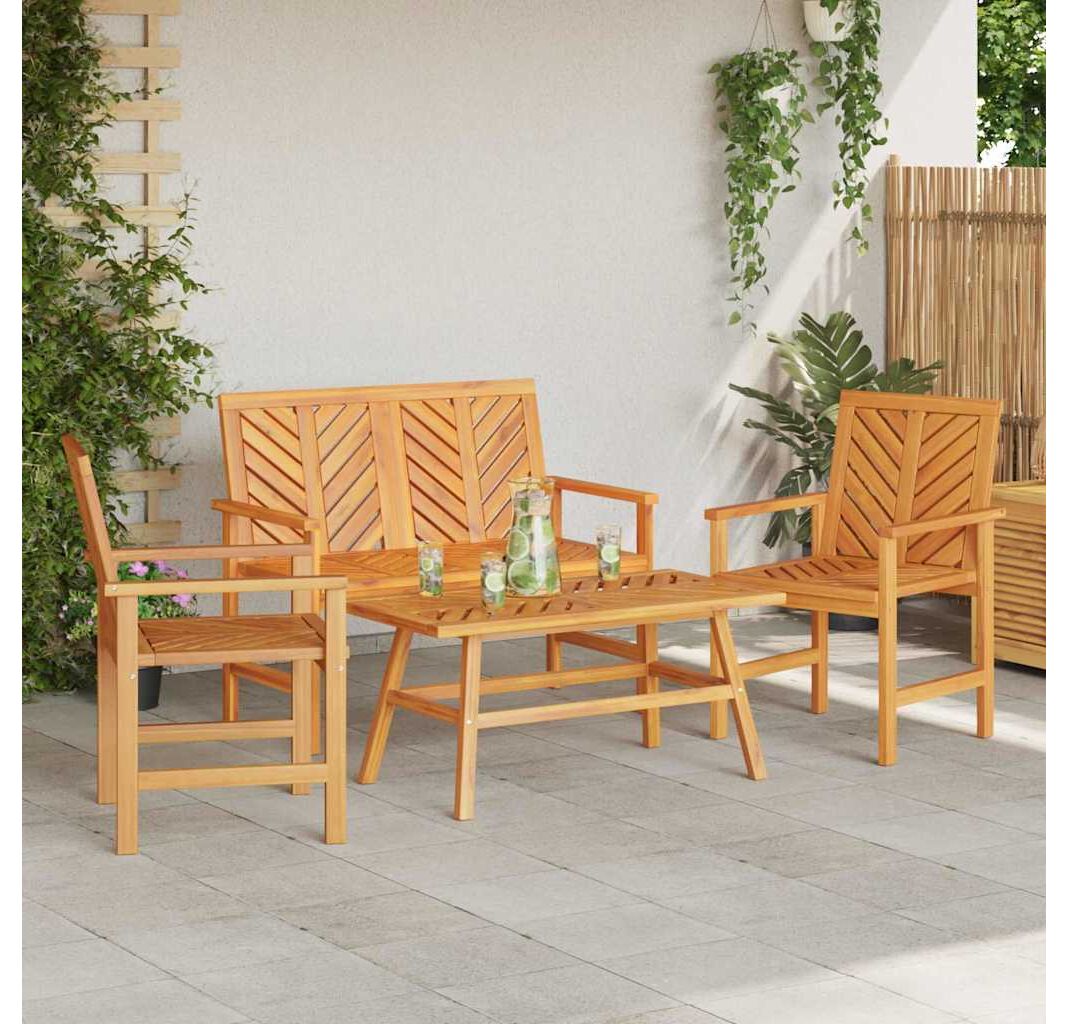 Setul de lounge pentru grădină vidaXL în 4 piese îi îmbină pe stil și utilitate, fiind perfect pentru a crea un spațiu confortabil afară. E făcut din lemn solid de acacia, cu un finisaj natural frumos care se potrivește perfect cu natura, fiind o adăugare binevenită în grădini, terase sau balcoane.