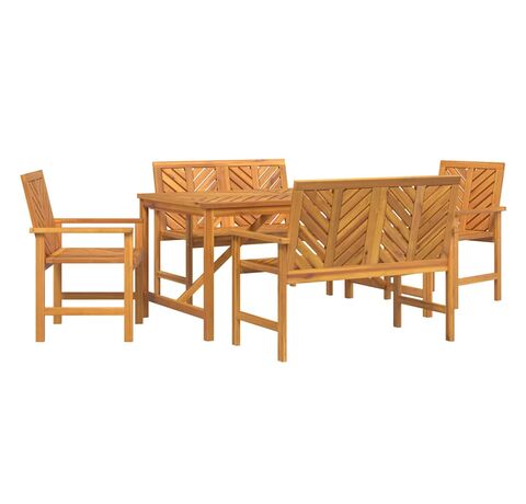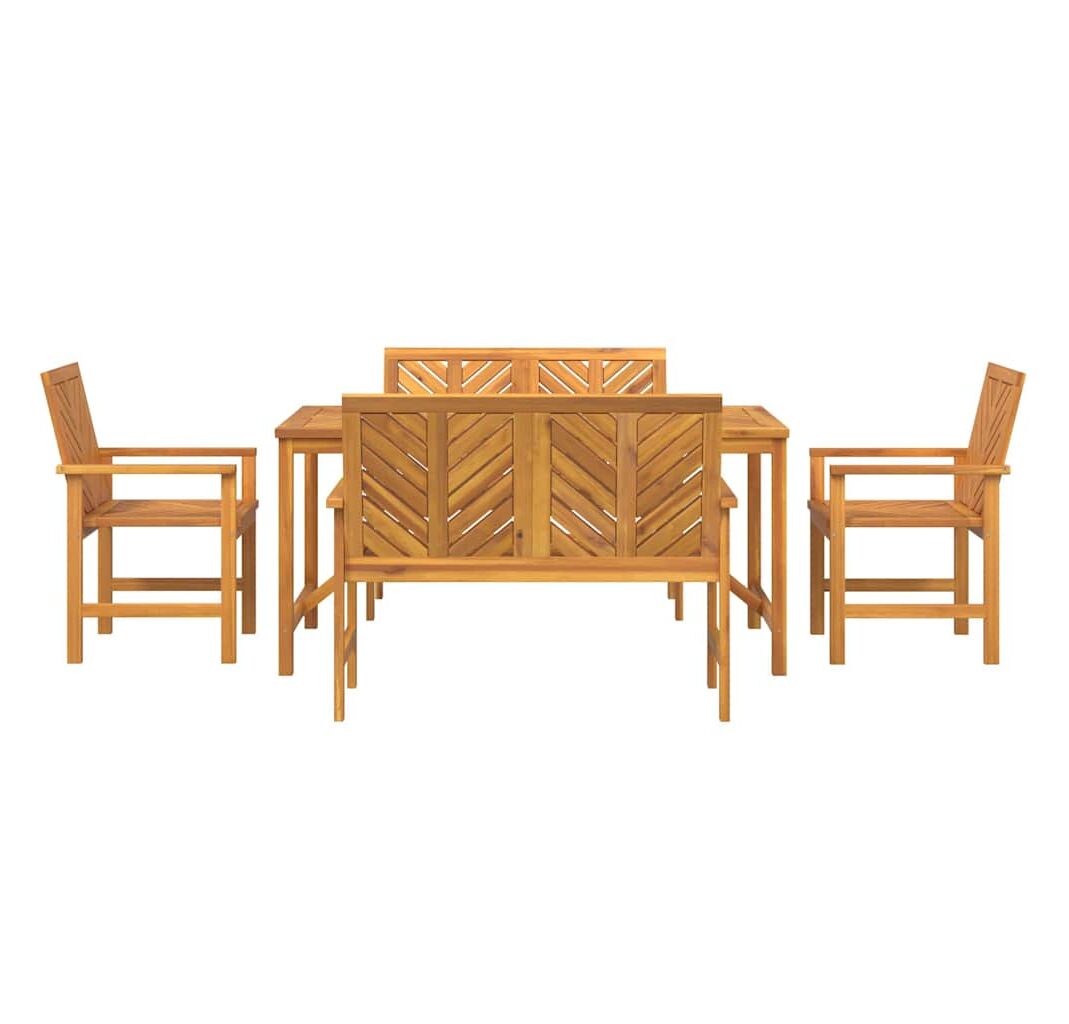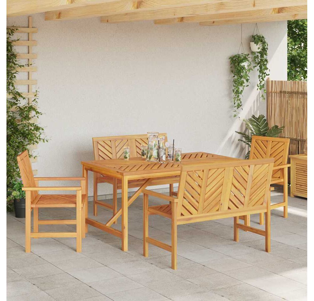 Setul ăsta de masă pentru grădină e o combinație faină între funcționalitate și stil, perfect pentru spațiul tău exterior. E făcut din lemn masiv de acacia într-un maro natural, și vine cu o masă dreptunghiulară, două bănci și două scaune stilate, oferindu-ți un loc solid și elegant pentru a lua masa sau a te relaxa.