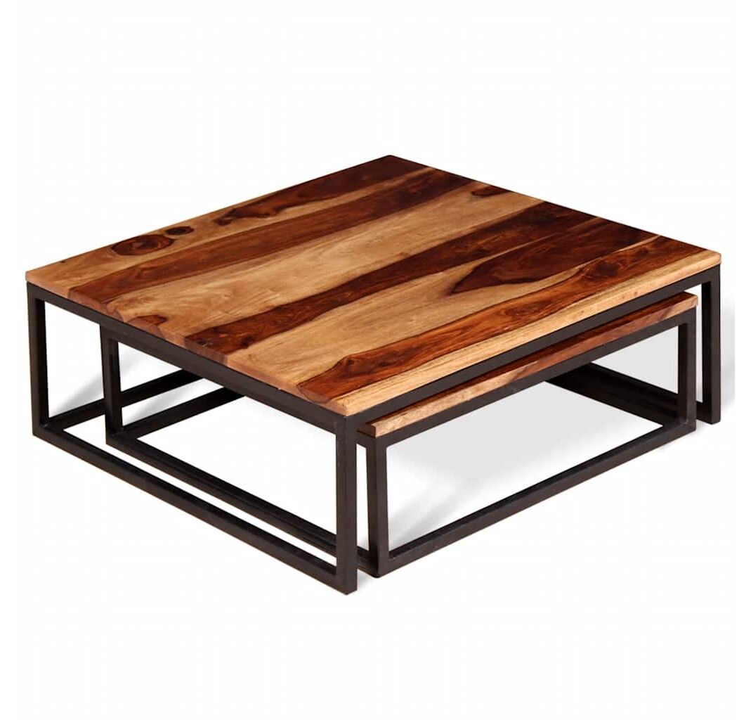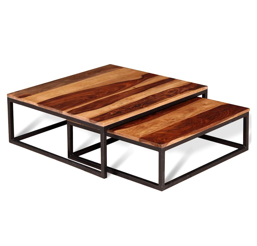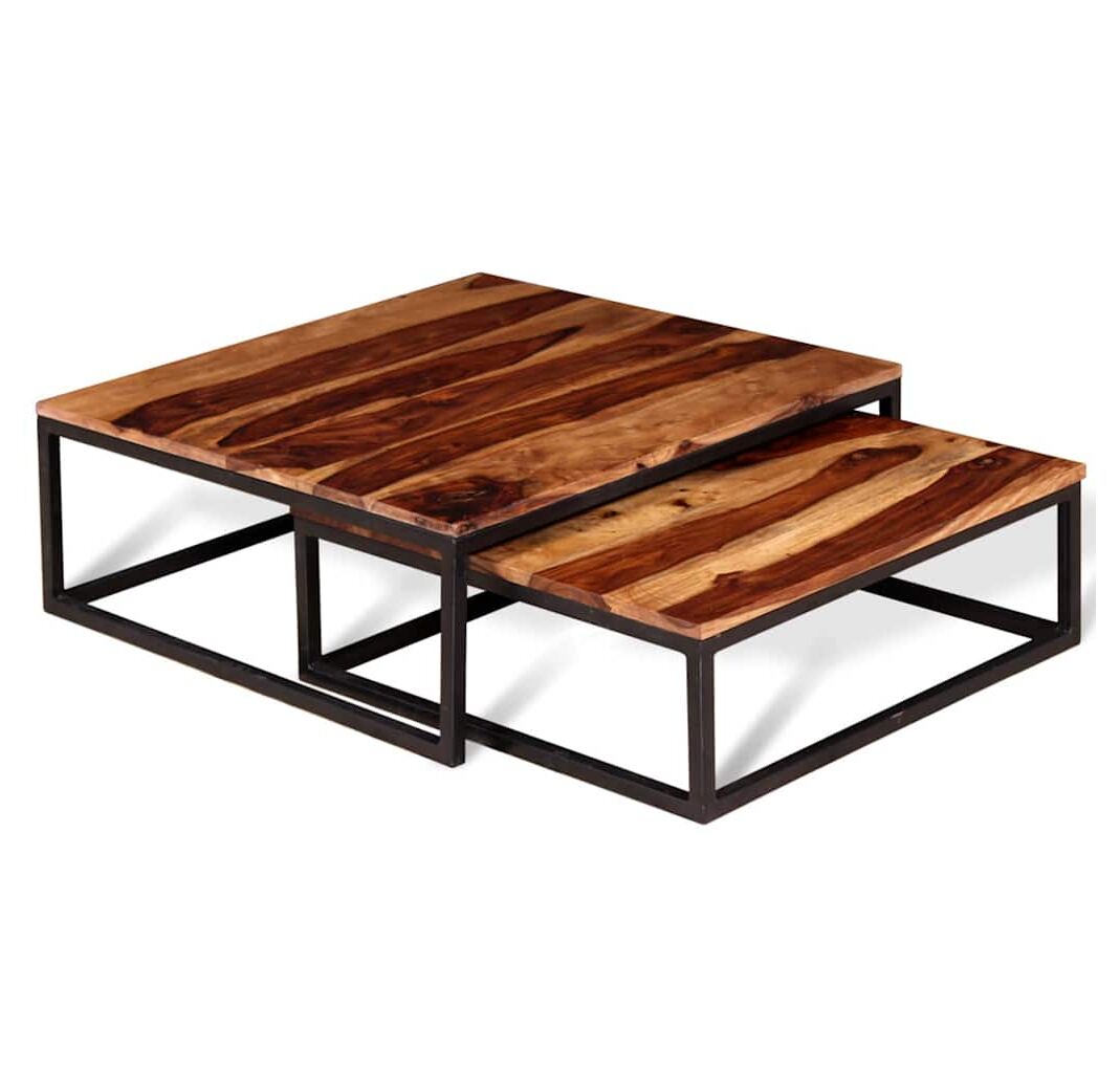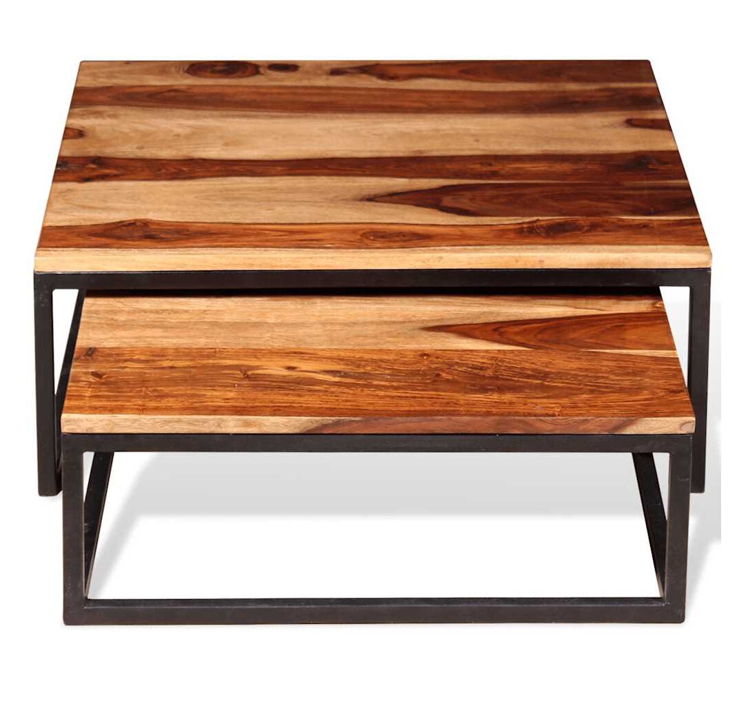 Set mese de cafea suprapuse 2 buc, lemn masiv de acacia