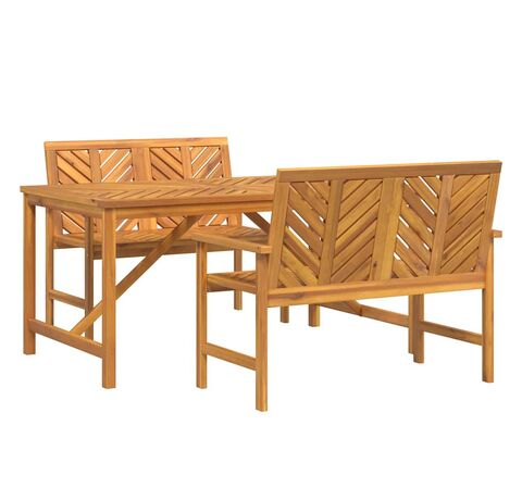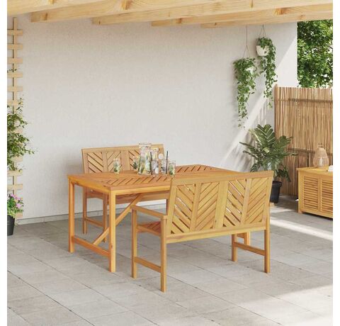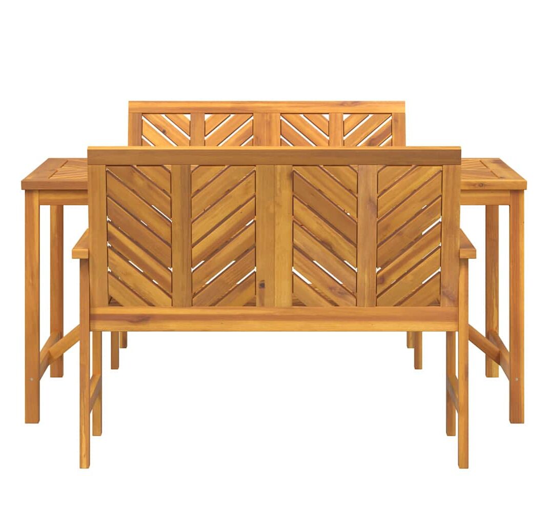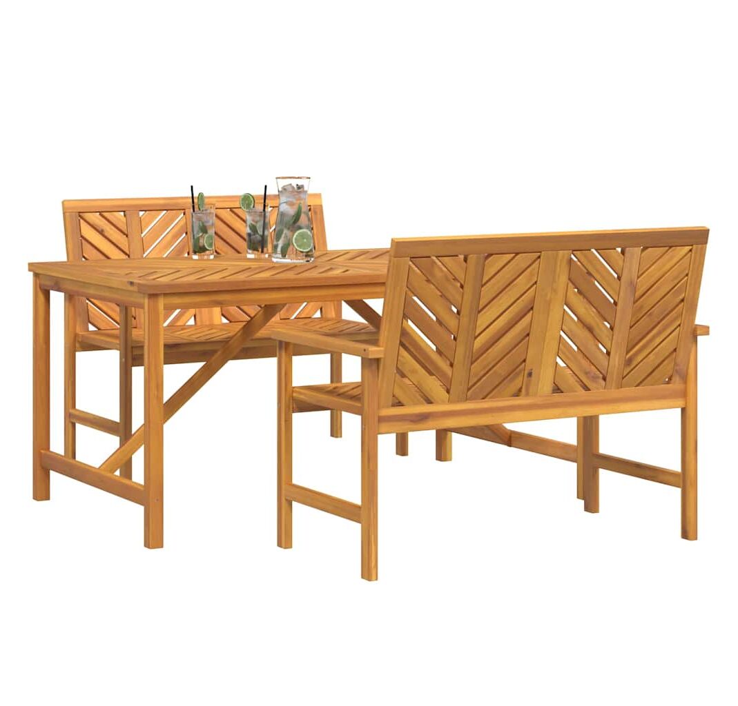 Setul ăsta de mese pentru grădină e despre stil și utilitate, fiind un must-have pentru spațiile tale exterioare. E făcut din lemn masiv de acacia și include o masă dreptunghiulară și două bănci care combină construcția robustă cu o atmosferă prietenoasă pentru mese sau socializare.