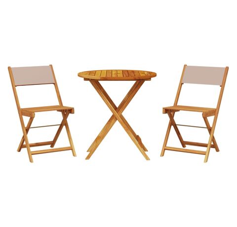Set mobilier bistro, 3 piese, textil taupe/lemn masiv