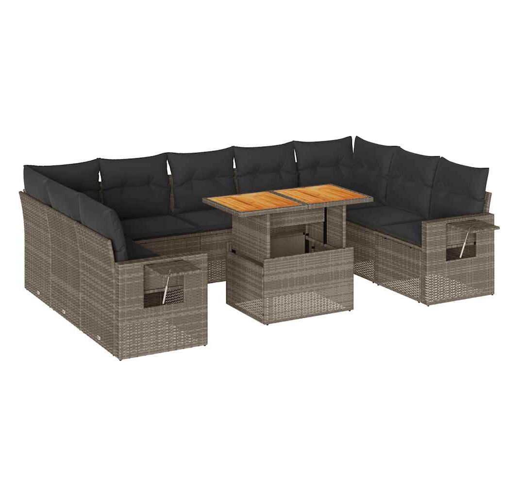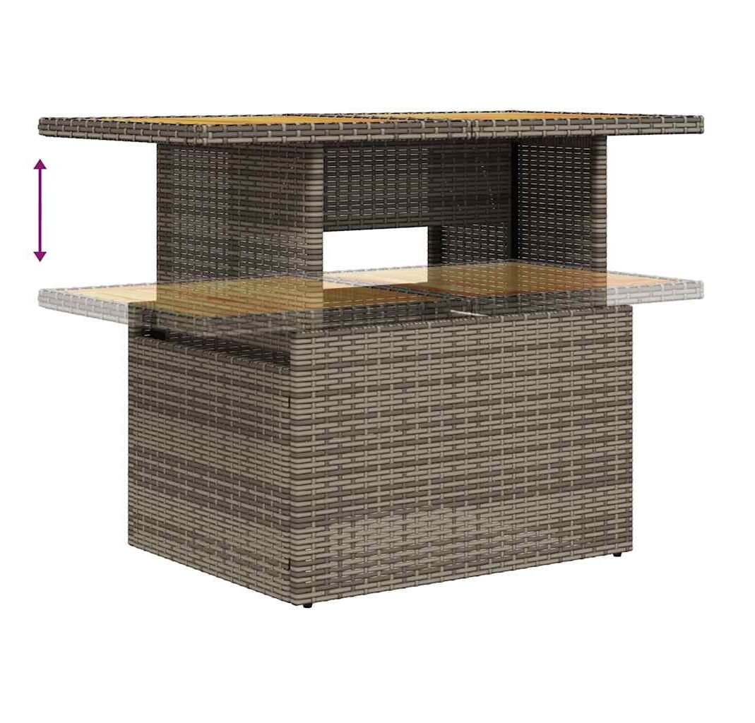 - Material: Ratan PE, oțel vopsit electrostatic, lemn masiv de acacia cu finisaj în ulei