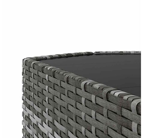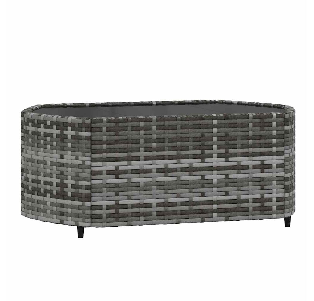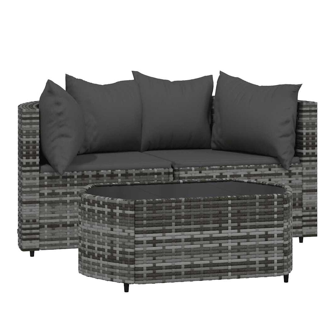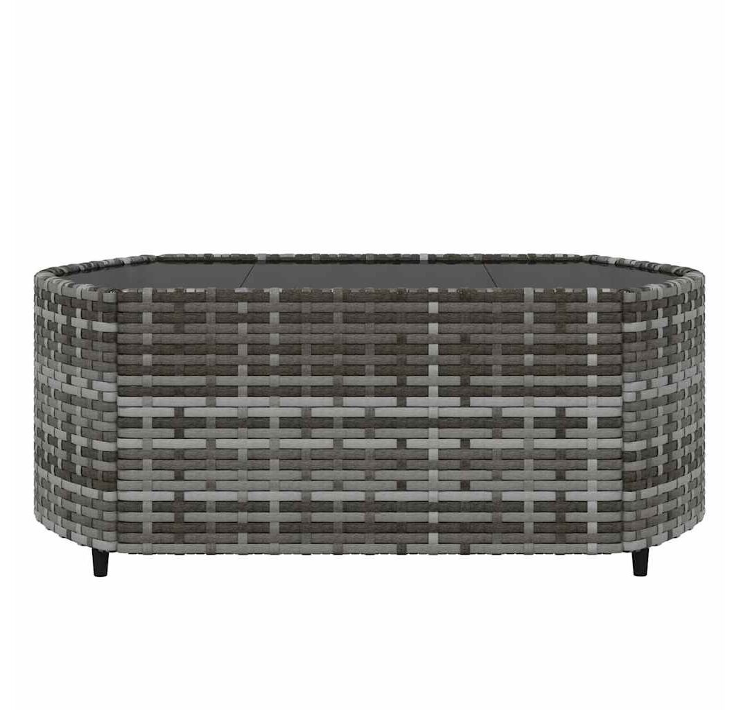 - Material: ratan PE, oțel vopsit electrostatic, textil (100% poliester), sticlă călită