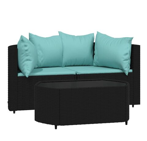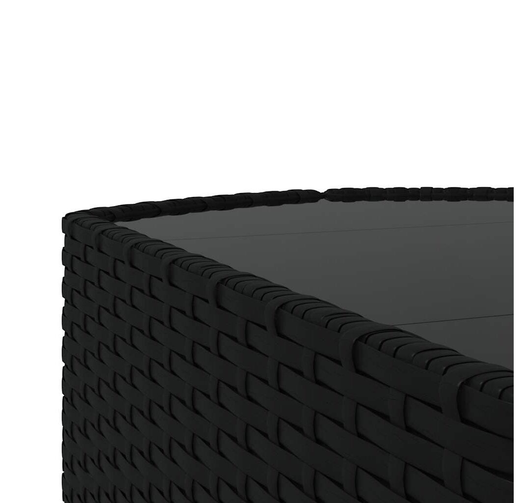 - Material: ratan PE, oțel vopsit electrostatic, textil (100% poliester), sticlă călită