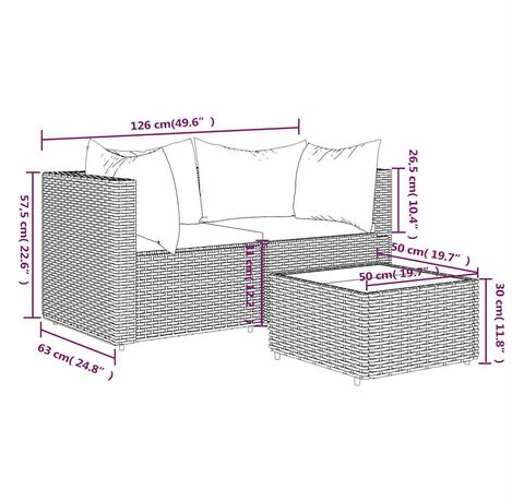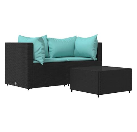 - Material: ratan PE, oțel vopsit electrostatic, textil (100% poliester), sticlă călită