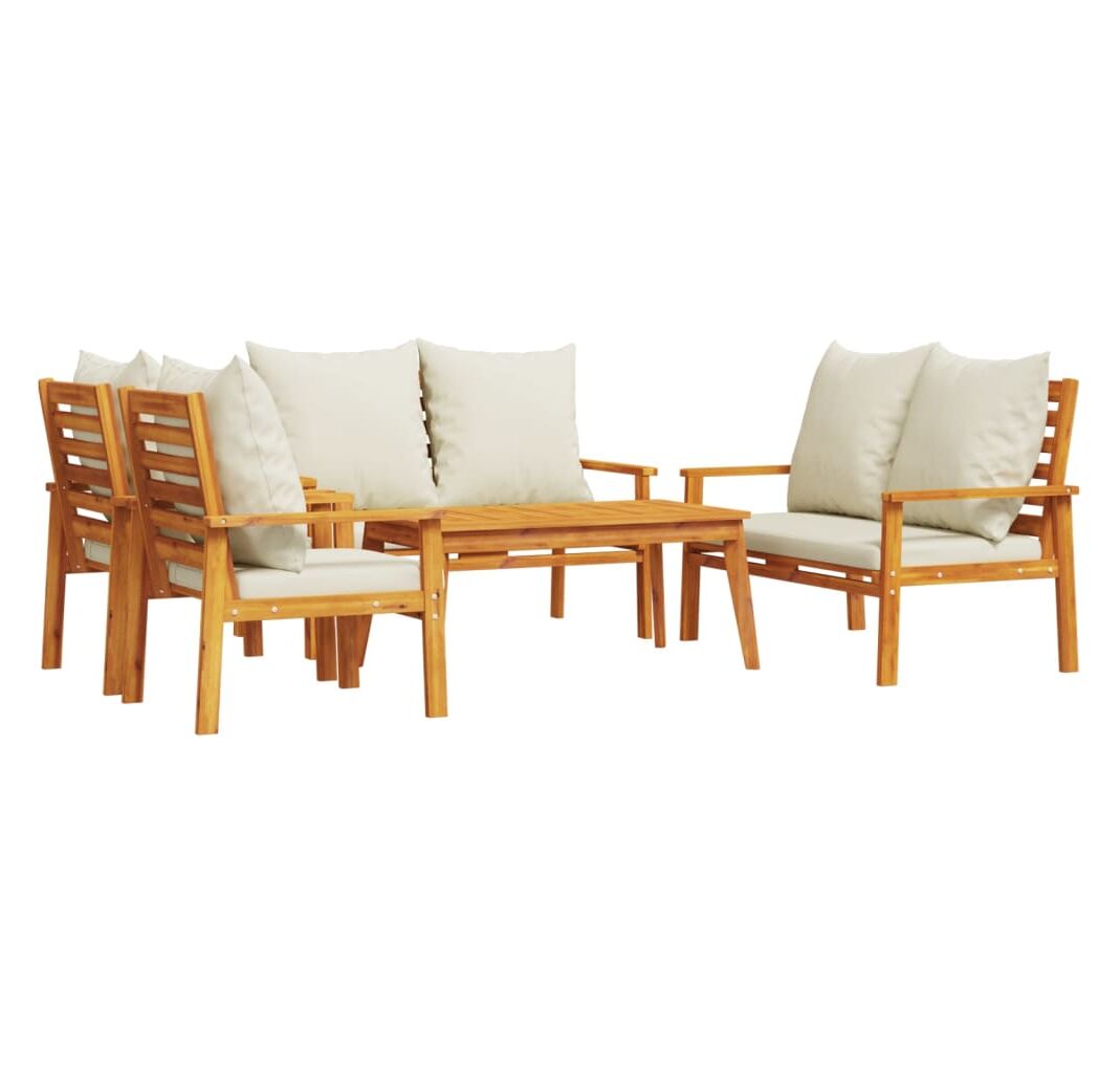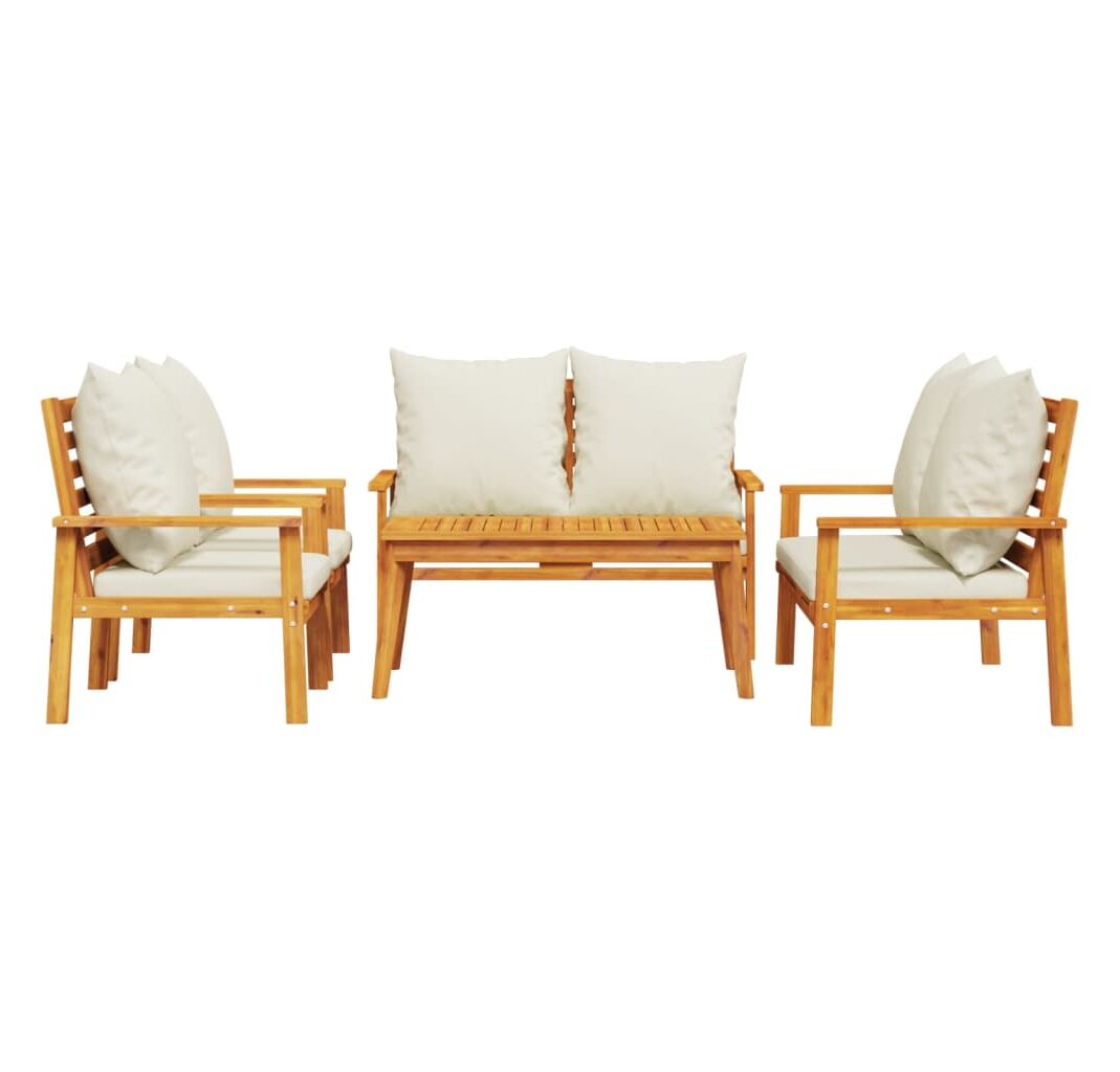 - Lemn masiv de salcâm: Setul de lounge pentru exterior este realizat din lemn masiv de salcâm pentru robustețe și stabilitate. Lemnul masiv de salcâm este un material natural frumos. Lemnul de salcâm are granulație frumoasă din lemn, ceea ce face fiecare piesă de mobilier distinctă și ușor diferită de celelalte.