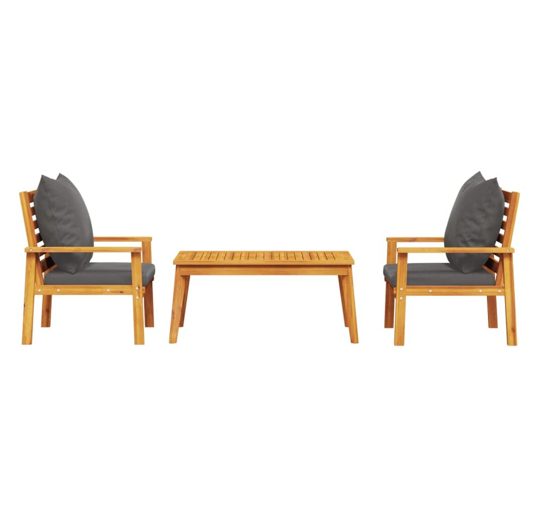 - Lemn masiv de salcâm: Setul de lounge pentru exterior este realizat din lemn masiv de salcâm pentru robustețe și stabilitate. Lemnul masiv de salcâm este un material natural frumos. Lemnul de salcâm are granulație frumoasă din lemn, ceea ce face fiecare piesă de mobilier distinctă și ușor diferită de celelalte.