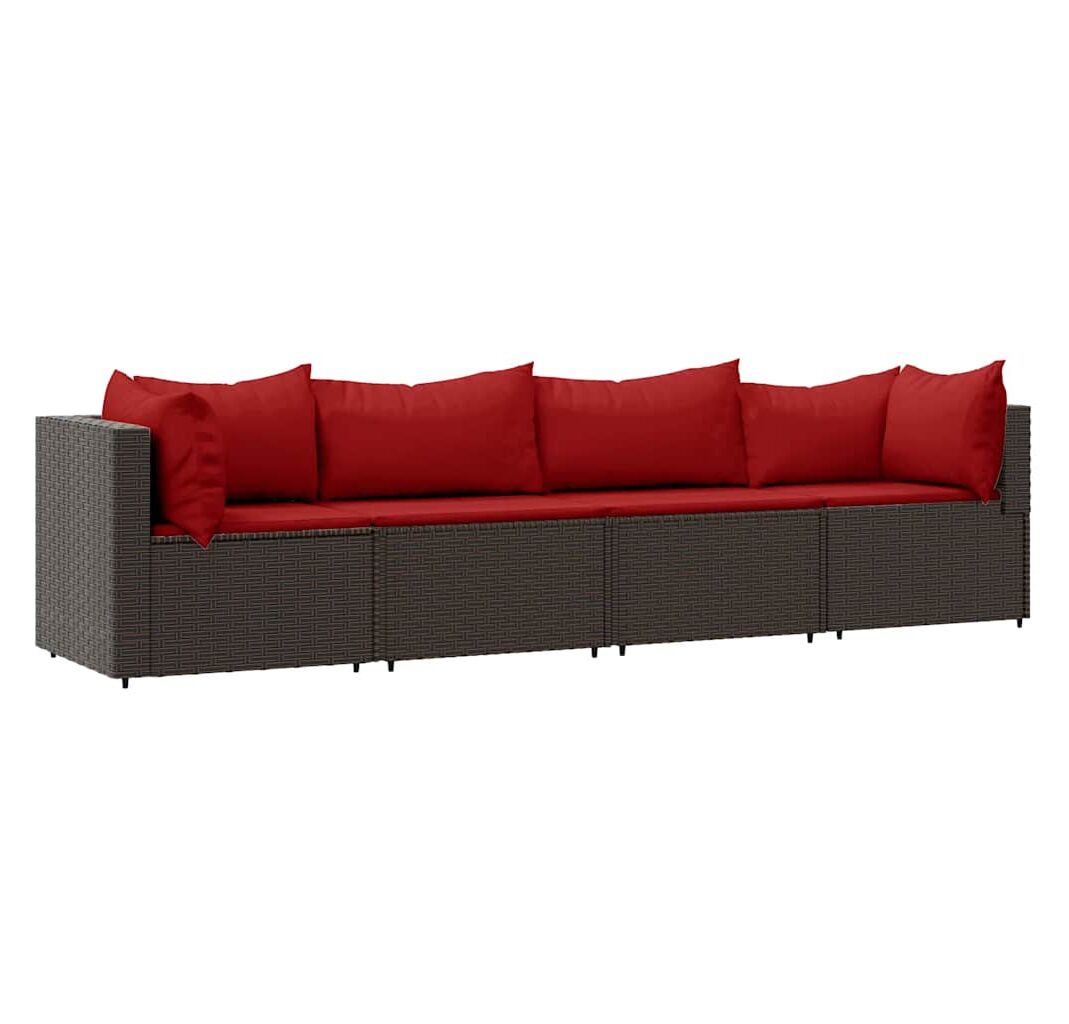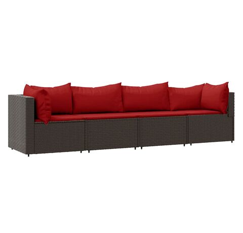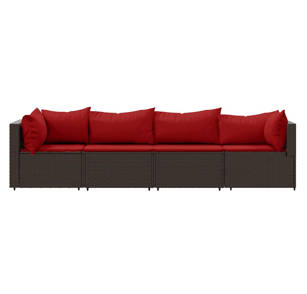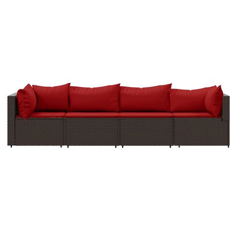 Set mobilier de grădină cu perne, 4 piese, maro, poliratan