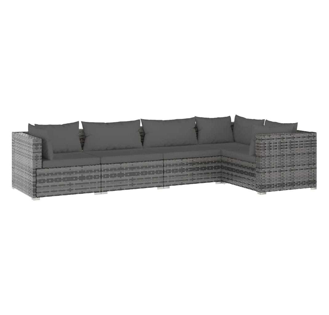 Set mobilier de grădină cu perne, 5 piese, gri, poliratan