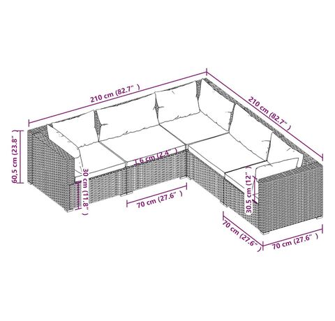 - Dimensiuni canapea colțar/de mijloc (fiecare): 70 x 70 x 60,5 cm (L x l x î)