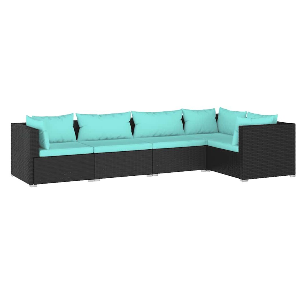 Set mobilier de grădină cu perne, 5 piese, negru, poliratan