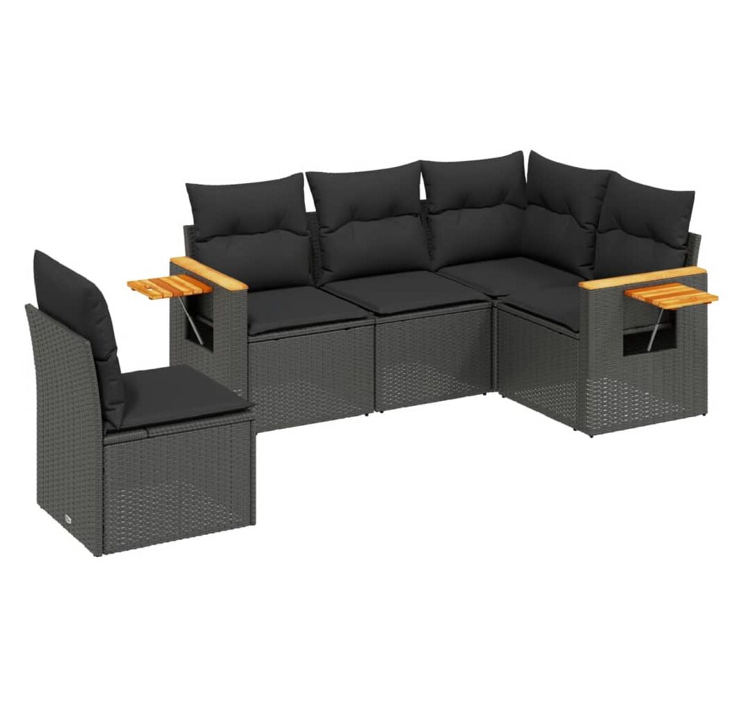 Set mobilier de grădină cu perne, 5 piese, negru, poliratan
