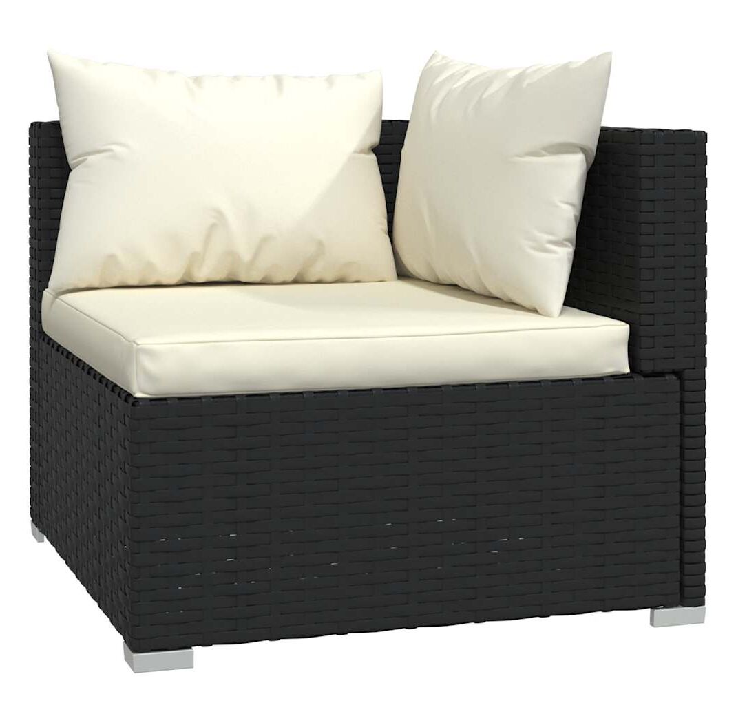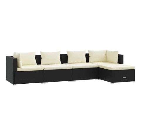 Set mobilier de grădină cu perne, 5 piese, negru, poliratan