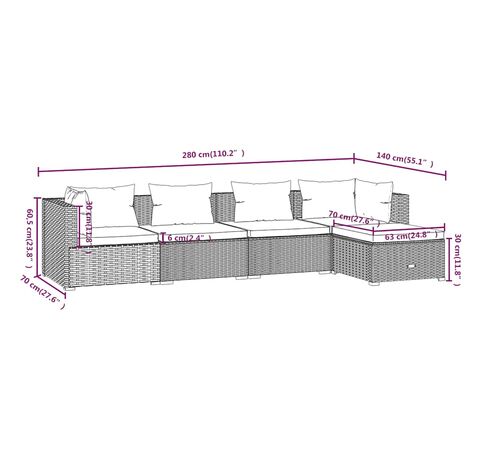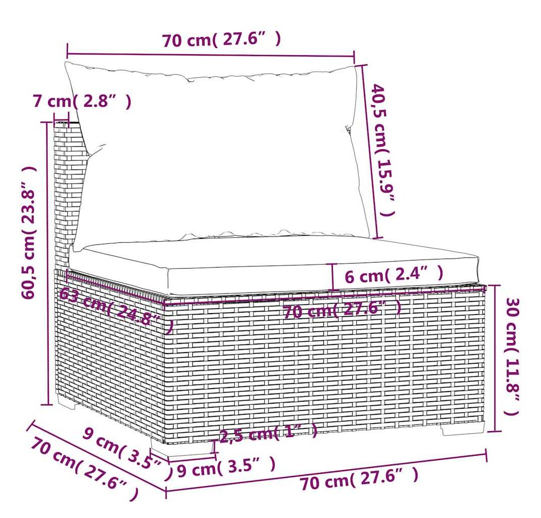 • Dimensiuni canapea colțar/de mijloc (fiecare): 70 x 70 x 60,5 cm (L x l x î)
