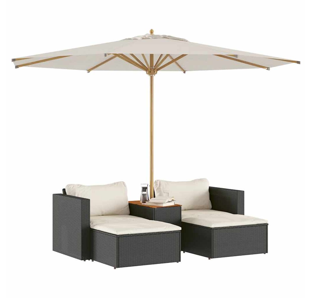 - Material: Ratan PE, oțel vopsit electrostatic, lemn masiv de acacia cu finisaj în ulei