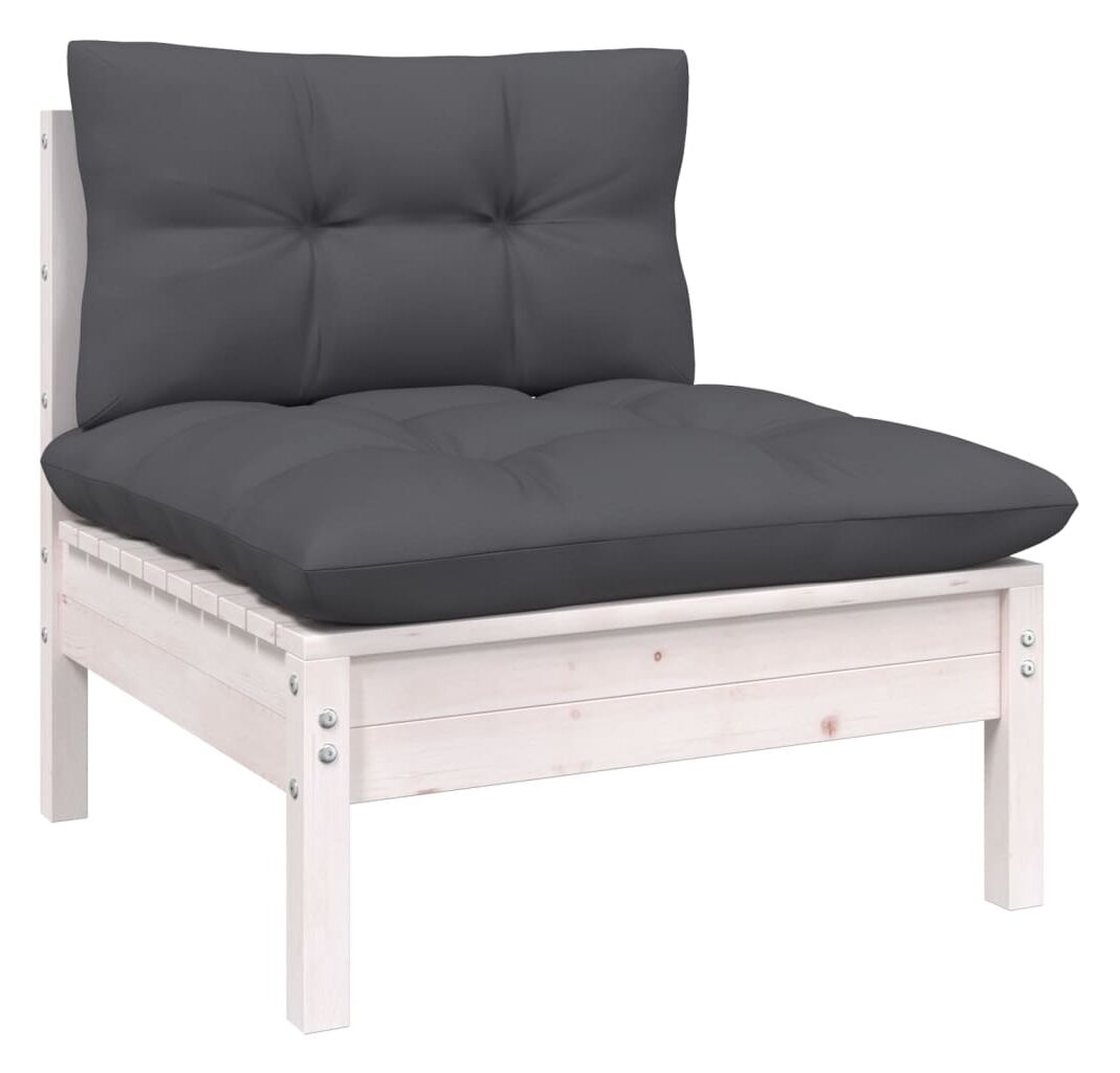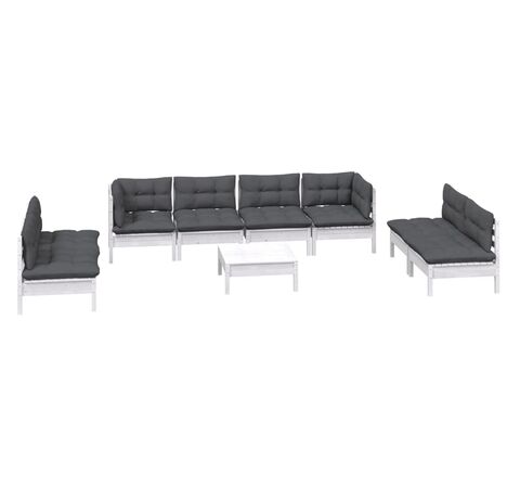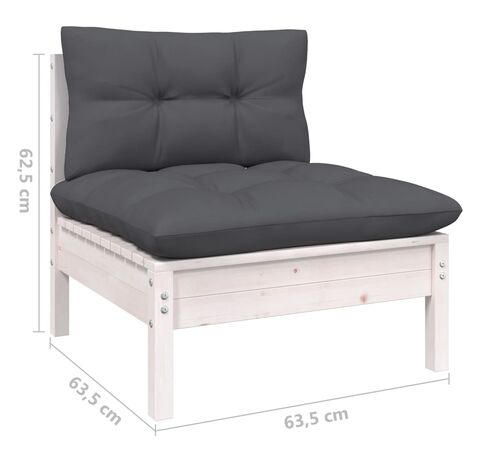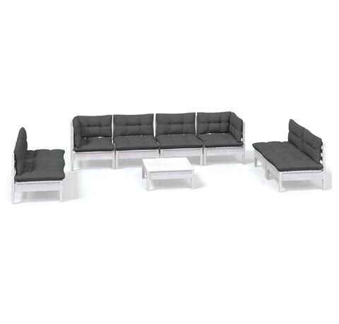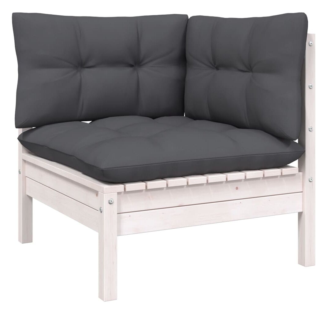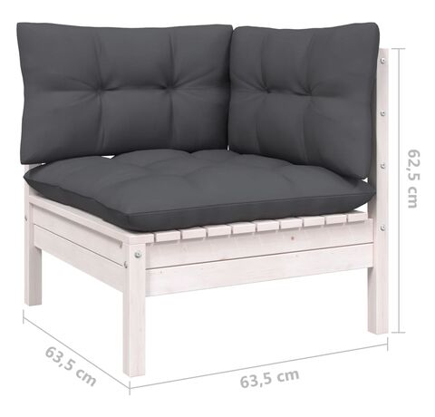 Setul de mobilier de relaxare pentru terasă este realizat din lemn masiv de pin, ceea ce îl face robust și stabil. Pernele adaugă extra confort. Puteți să îl combinați cu alte segmente modulare pentru a vă crea propriile configurații de seturi de grădină personale!