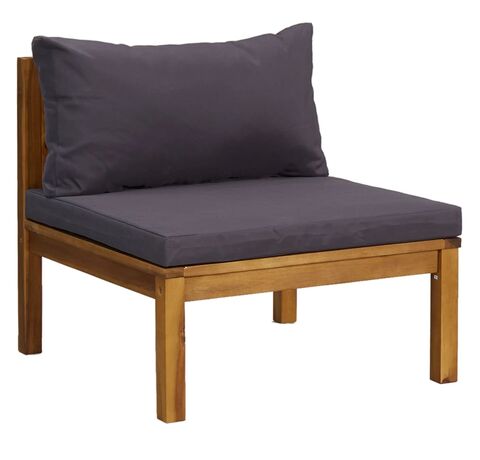 Având un cadru din lemn masiv de acacia, setul cu canapea este rezistent, robust și durabil, iar finisajul său cu ulei face ca acest set să fie potrivit pentru utilizarea în exterior. Pernele detașabile sunt căptușite în strat gros, astfel încât să ofere un confort deosebit. De asemenea, este inclusă o măsuță de cafea, cu un design original cu șipci. În plus, deoarece setul se distinge prin designul modular, toate piesele pot fi aranjate și personalizate după necesități.