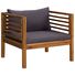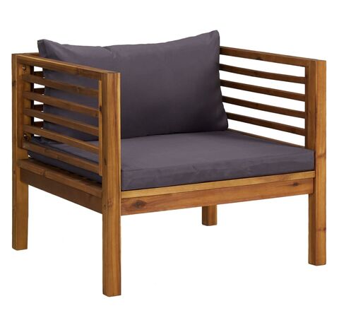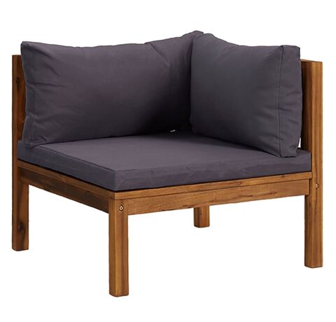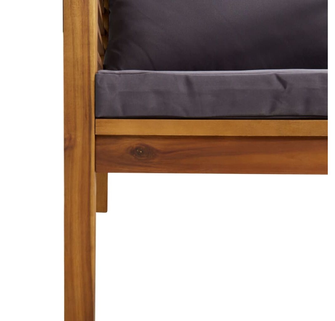 Având un cadru din lemn masiv de acacia, setul cu canapea este rezistent, robust și durabil, iar finisajul său cu ulei face ca acest set să fie potrivit pentru utilizarea în exterior. Pernele detașabile sunt căptușite în strat gros, astfel încât să ofere un confort deosebit. De asemenea, este inclusă o măsuță de cafea, cu un design original cu șipci. În plus, deoarece setul se distinge prin designul modular, toate piesele pot fi aranjate și personalizate după necesități.
