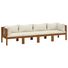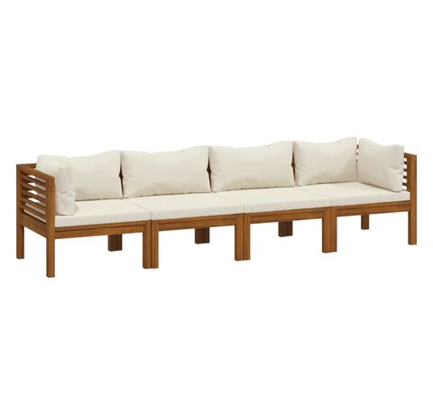 Având un cadru din lemn masiv de acacia, setul cu canapea este rezistent, robust și durabil, iar finisajul său cu ulei face ca acest set să fie potrivit pentru utilizarea în exterior. Pernele detașabile sunt căptușite în strat gros, astfel încât să ofere un confort deosebit. De asemenea, este inclusă o măsuță de cafea, cu un design original cu șipci. În plus, deoarece setul se distinge prin designul modular, toate piesele pot fi aranjate și personalizate după necesități.