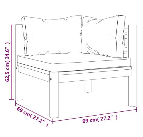 - Dimensiuni canapea de colț: 69 x 69 x 62,5 cm (l x ad. x î)