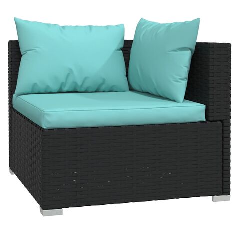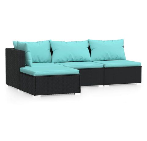 Cantitatea minima pentru "Set mobilier relaxare grădină 4 piese cu perne poliratan negru" este 1.