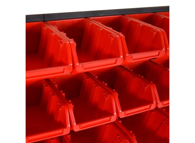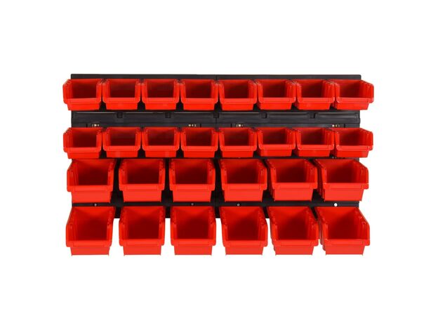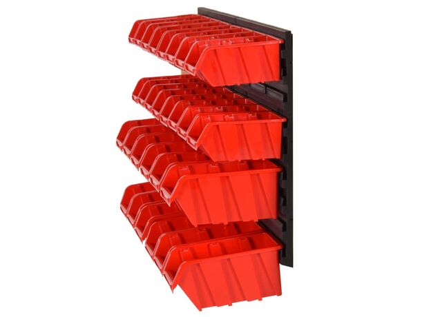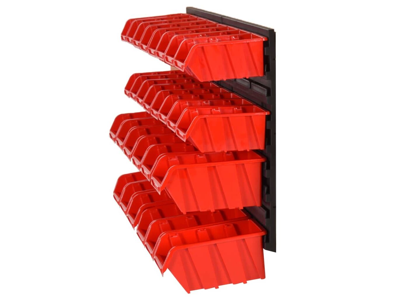 Acest set de rafturi pentru atelier, la îndemână, este format din plăci de perete și cutii de depozitare. Este o alegere perfectă pentru a vă ordona spațiul la locul de muncă, păstrând în același timp piesele mici la îndemână!