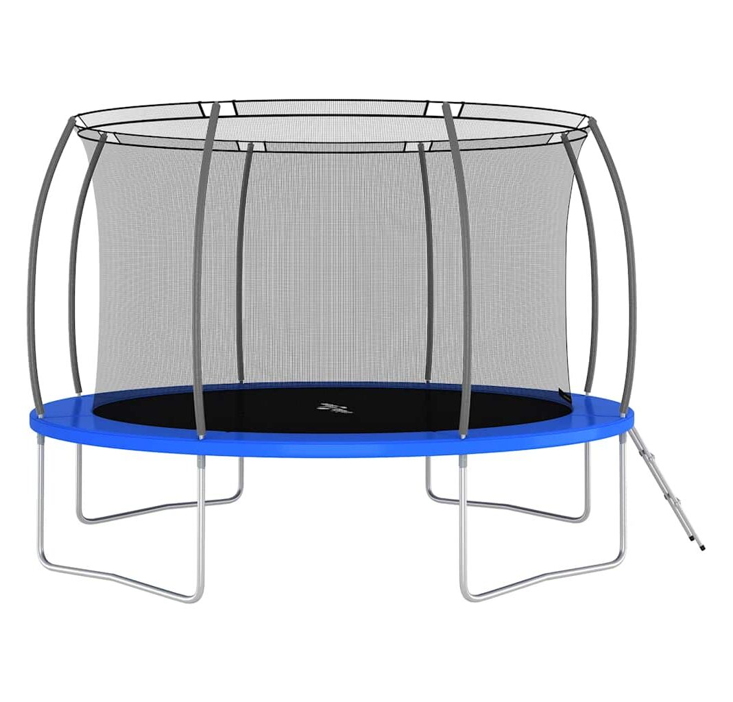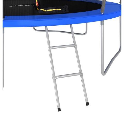 Distrați-vă mult și săriți pe această trambulină rotundă! Acest set cu trambulină include o plasă de siguranță, o scară de intrare și o copertină de ploaie în pachetul de livrare.
