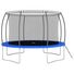 Trambulina de exterior este realizată din cadru din oțel galvanizat rezistent la rugină, cu 4 picioare în formă de U, pentru un plus de stabilitate și siguranță. Mai mult decât atât, trambulina este echipată cu o căptușeală din PVC de de înaltă calitate, cu spumă EPE de 18 mm, pentru a garanta siguranța copiilor dvs., atunci când se lovesc accidental de marginea trambulinei.
