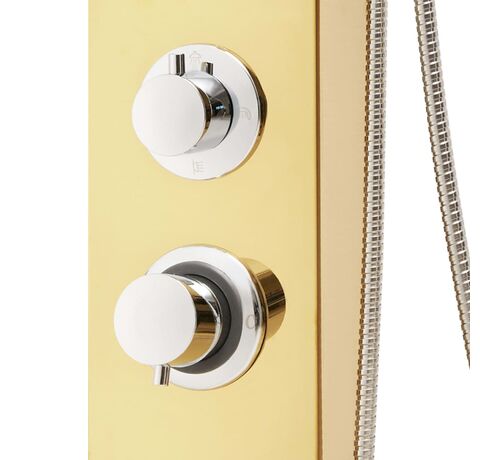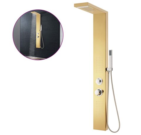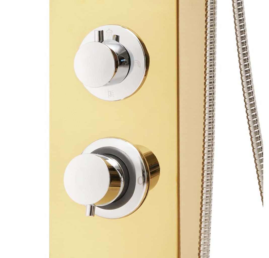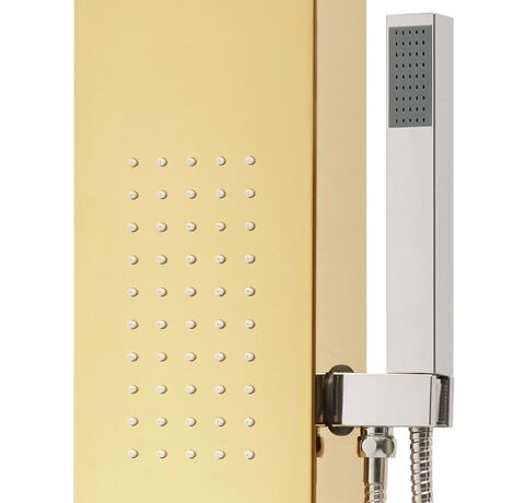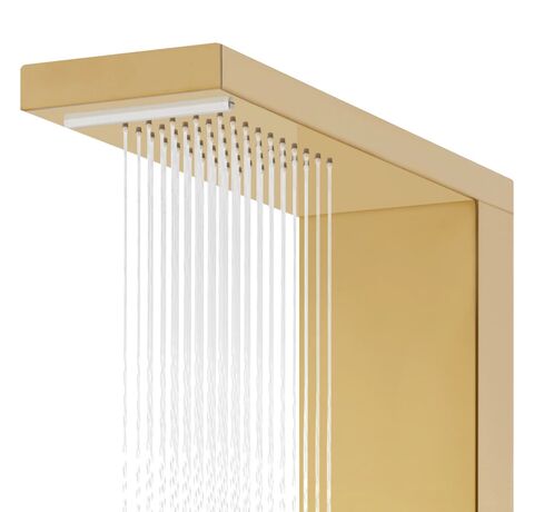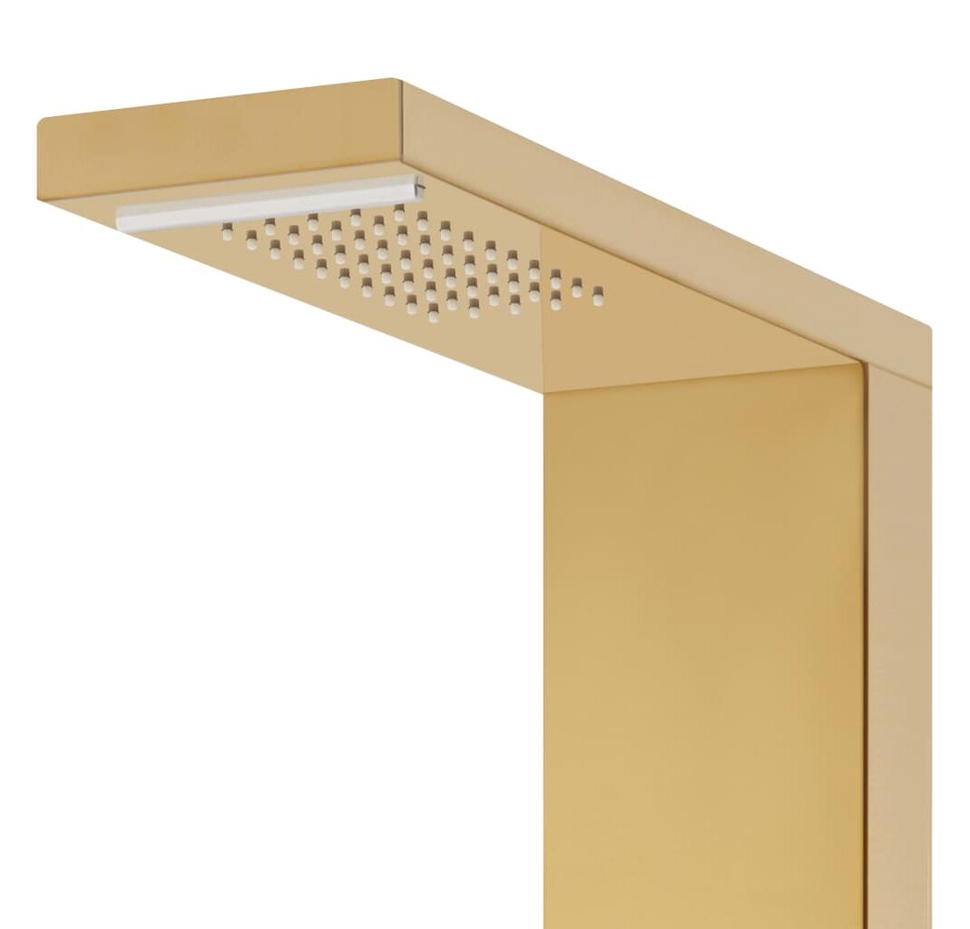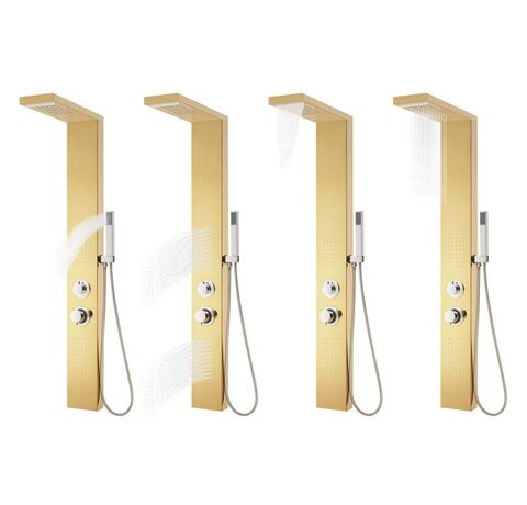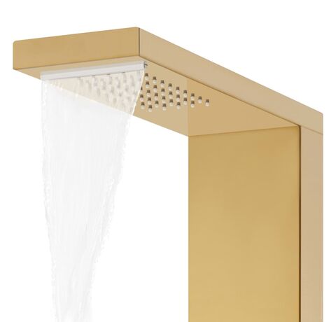 Turnul de duș este fabricat din oțel inoxidabil durabil cu finisaj auriu tip oglindă, cu un design frumos, pătrat. Are patru funcții: efect ploaie, cascadă, jeturi de masaj și un mâner duș portabil, care pot fi ușor selectate cu ajutorul unui buton.