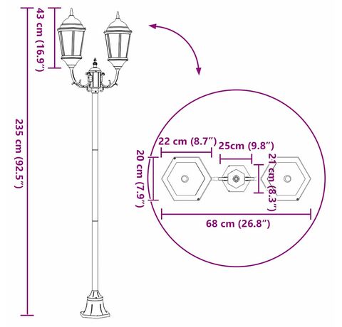 Lampă Solară de Drum Tradițională Verde Închis care iluminează frumos exteriorul. Combină funcționalitatea cu un design clasic, aducând stil grădinii, terasei sau balconului tău. Cadru din metal vopsit arată genial și oferă o strălucire albă caldă, creând alei primitoare și îmbunătățind întâlnirile afară.