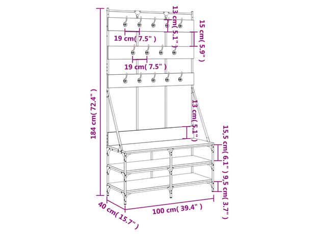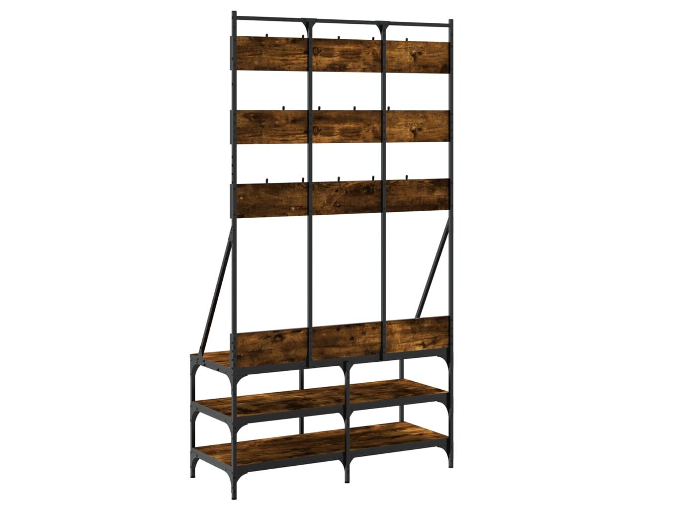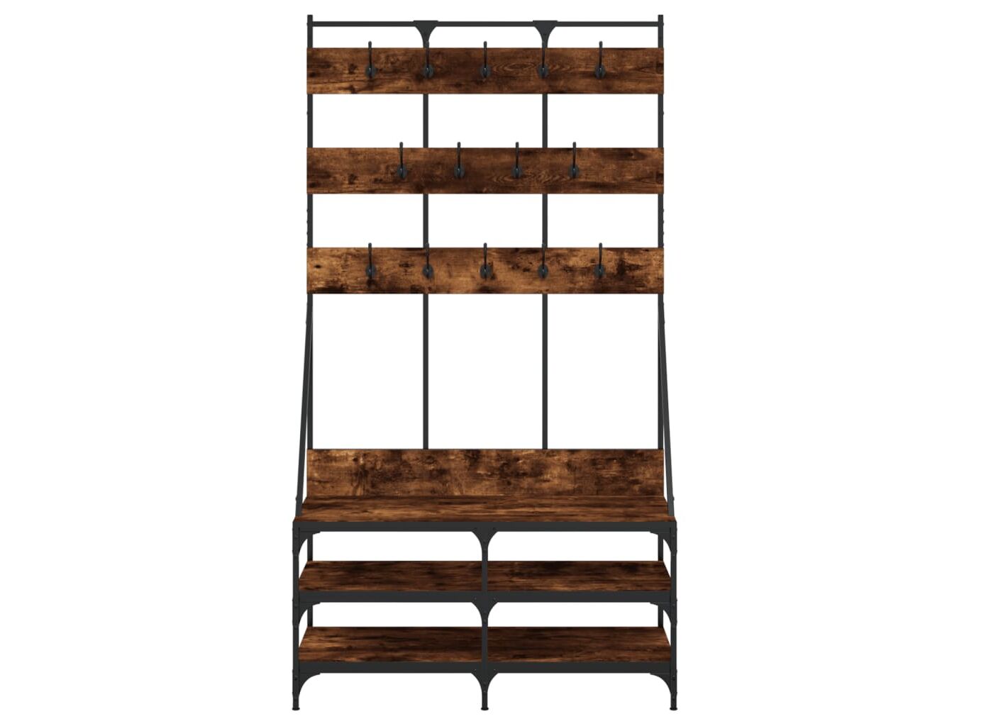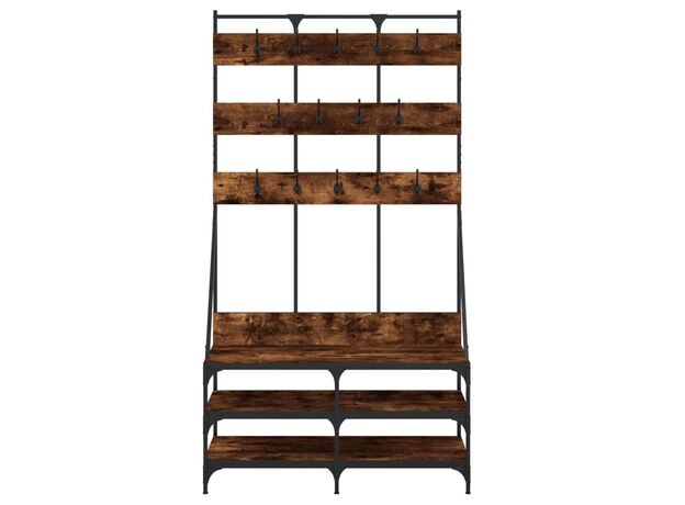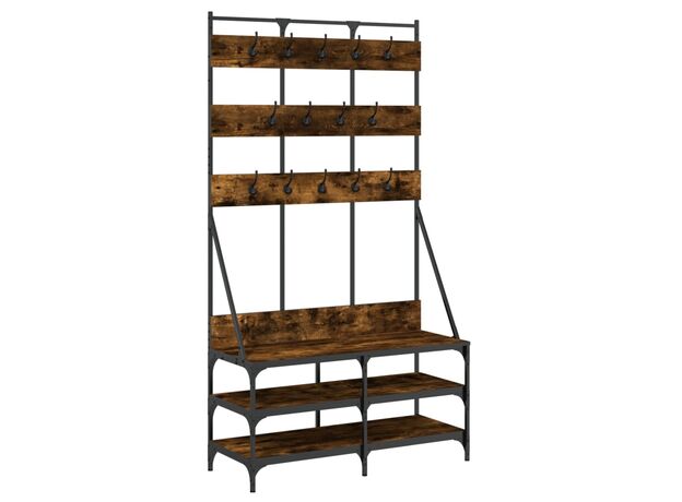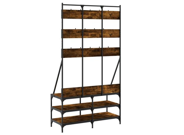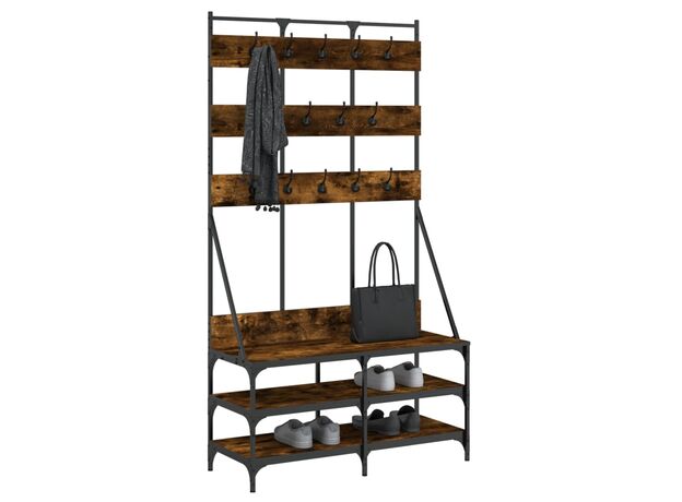 Suport de haine cu raft de pantofi stejar fumuriu, 100x40x184cm