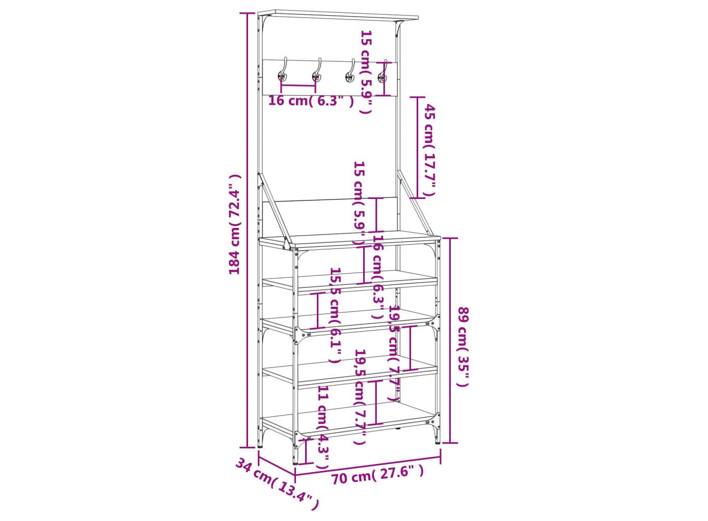 Suport de haine cu raft pantofi, stejar sonoma, 70x34x184 cm