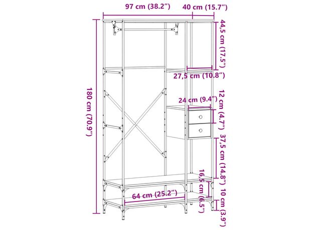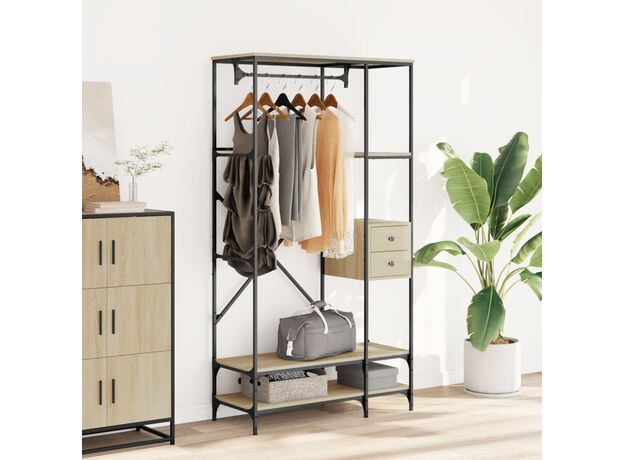 Suport de haine cu rafturi, stejar sonoma, lemn prelucrat