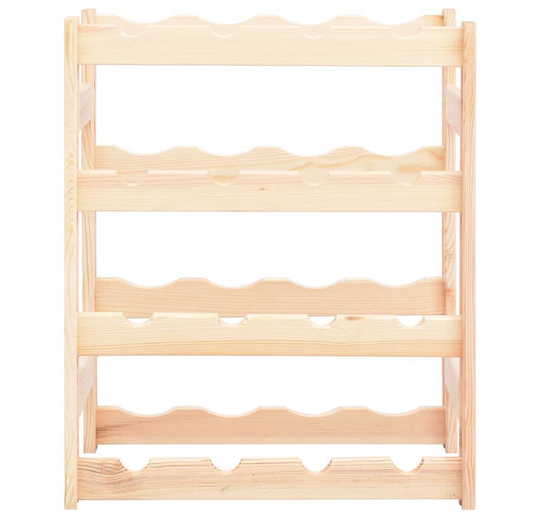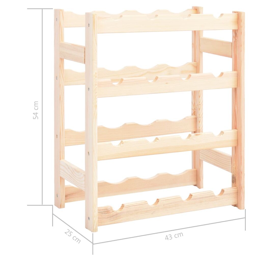 Suportul de vin susține până la 16 sticle de vin. Fabricat din lemn masiv de pin, este extrem de rezistent! Puteți să îi păstrați culoarea naturală sau să îi aplicați un strat de vopsea ori alt finisaj în culoarea preferată. Datorită materialelor de montaj incluse, suportul nostru pentru vin este ușor de asamblat.